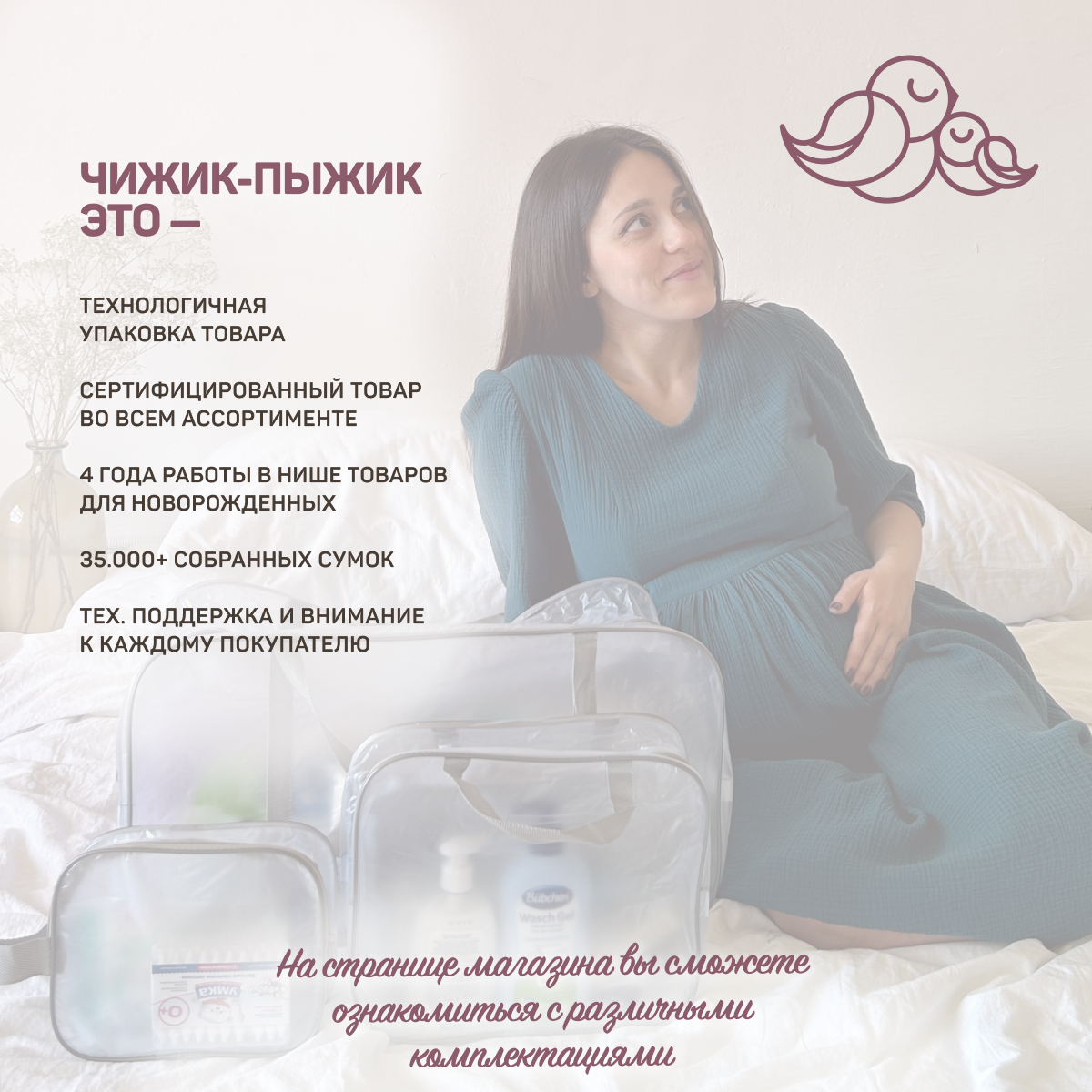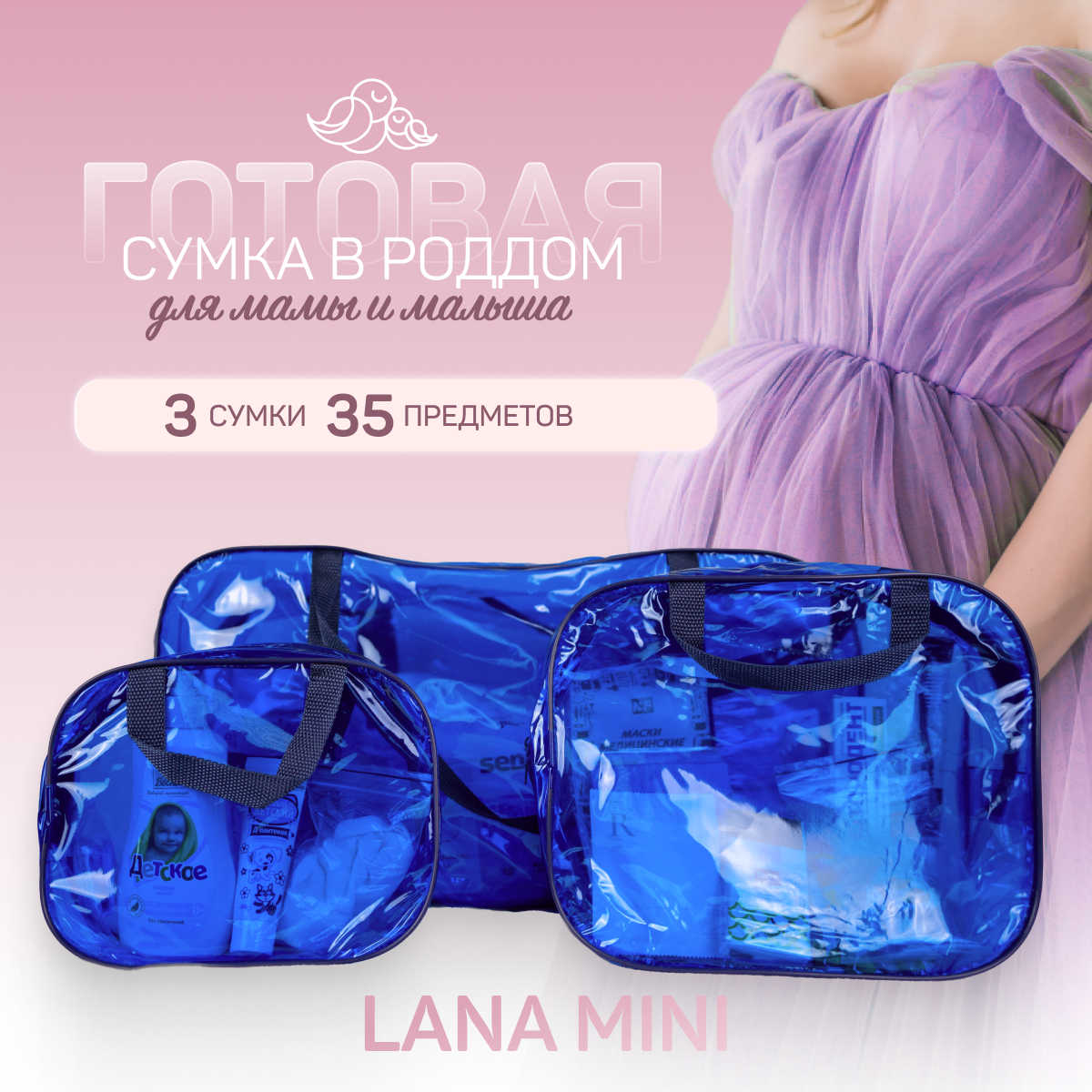 Сумка в роддом готовая для мамы и малыша с наполнением, 35 предметов, прозрачная