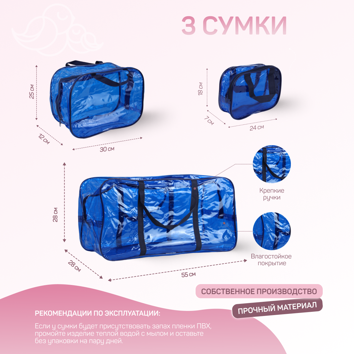 Сумка в роддом готовая для мамы и малыша с наполнением, 35 предметов, синяя интересное:
