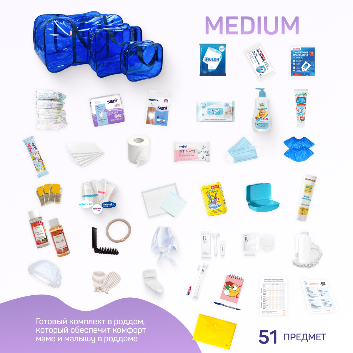 Сумка в роддом готовая для мамы и малыша с наполнением, 51 предмет, синяя интересное: