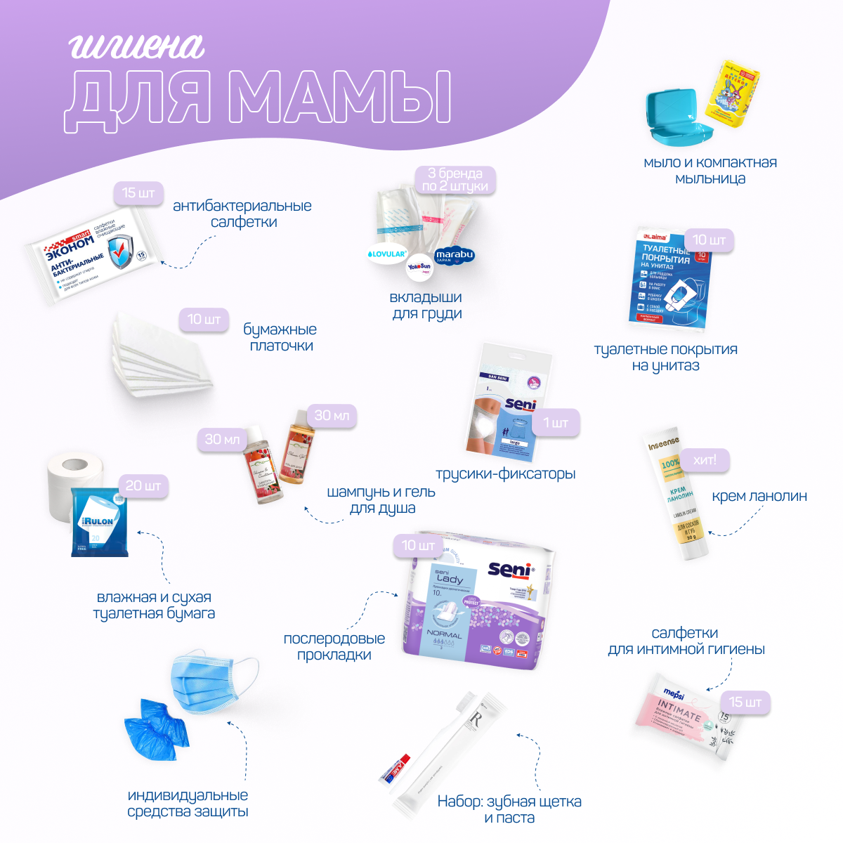 Сумка в роддом готовая для мамы и малыша с наполнением, 51 предмет, фиолетовая
