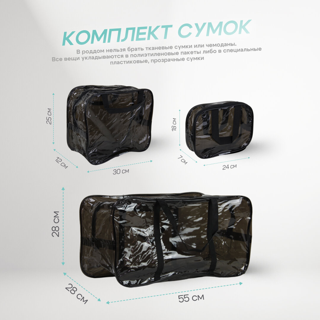Сумка в роддом готовая для мамы и малыша с наполнением Full mom Maxi, 74 предмета, прозрачная