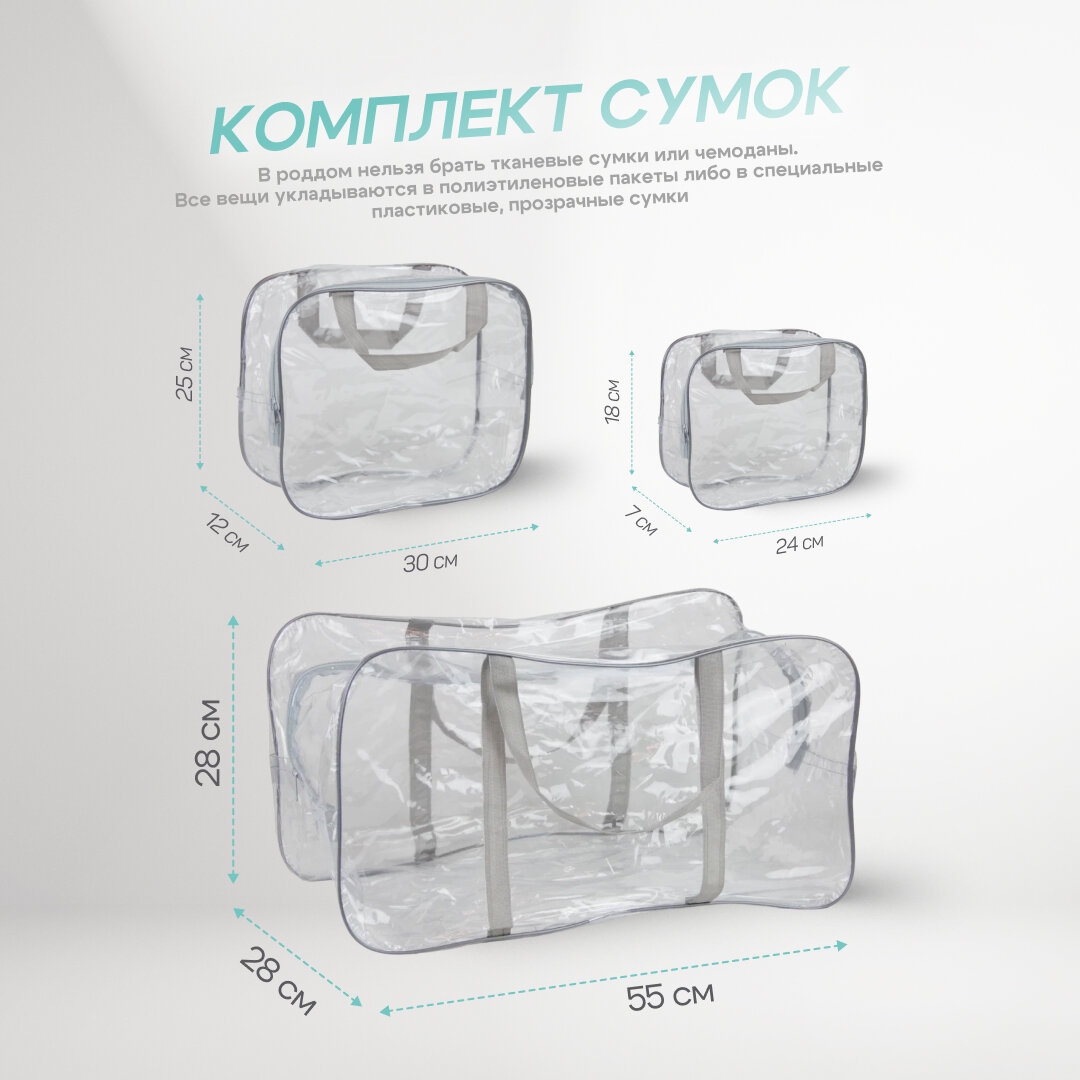 Сумка в роддом готовая для мамы и малыша с наполнением Full mom Maxi, 74 предмета, прозрачная интересное: