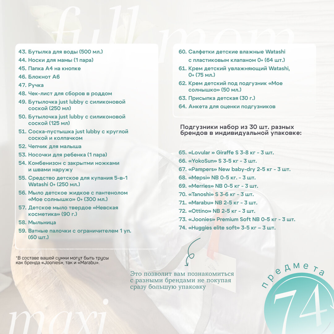 Сумка в роддом готовая для мамы и малыша с наполнением Full mom Maxi, 74 предмета, матовая