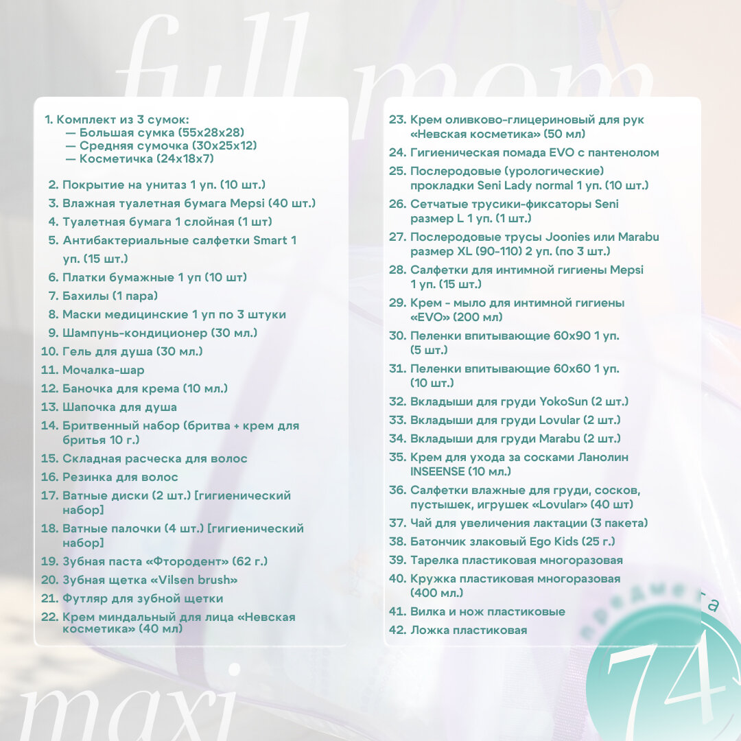 Ниже Вы можете прочитать отзывы на Сумка в роддом готовая для мамы и малыша с наполнением Full mom Maxi, 74 предмета, фиолетовая, ознакомится с подробными характеристиками, посмотреть интересные обзоры и фотографии на Сумка в роддом готовая для мамы и малыша с наполнением Full mom Maxi, 74 предмета, фиолетовая.