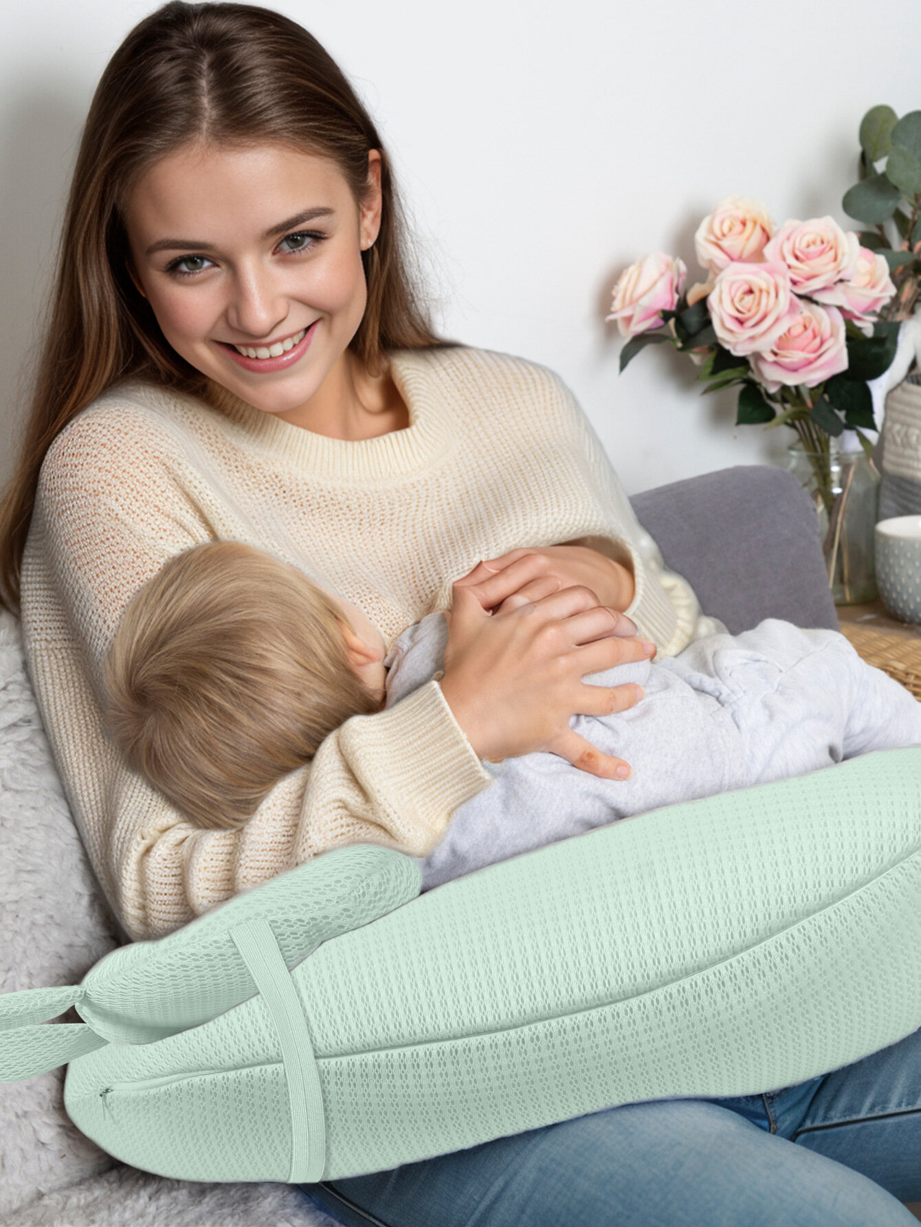 Подушка для кормления, многофункциональная, светло-зеленая