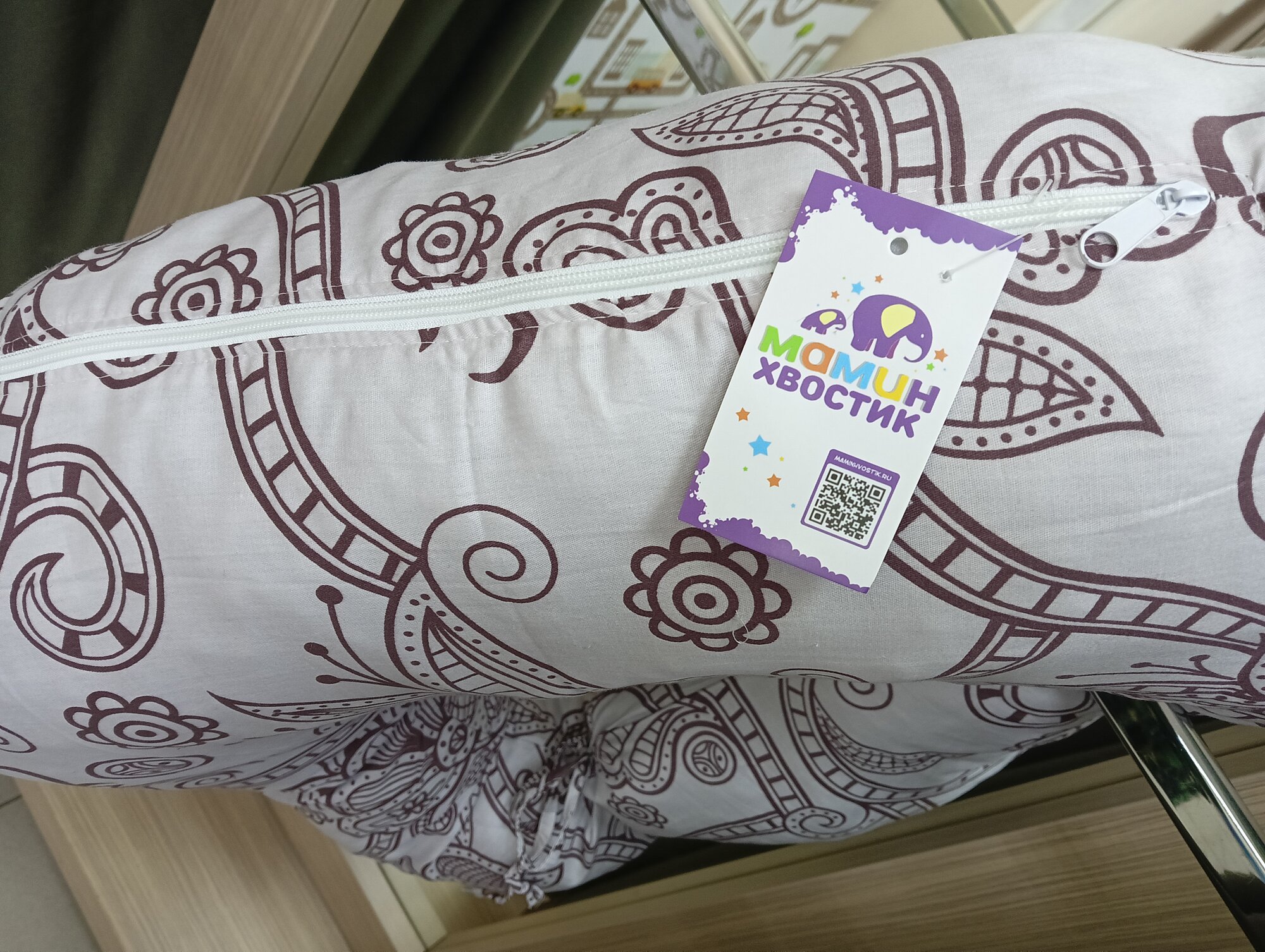 Наволочка на подушку Бублик для Беременных и Кормящих, на молнии, Бежевая, 100% Хлопок, U-Форма интересное:
