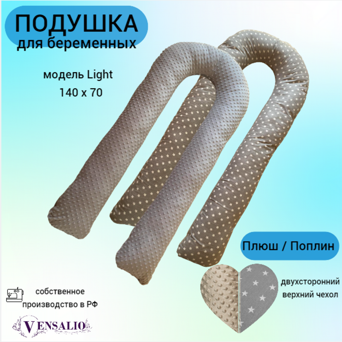 Подушка для беременных Vensalio U340 Light "Звезды-Плюш", серая, 140х70 интересное: