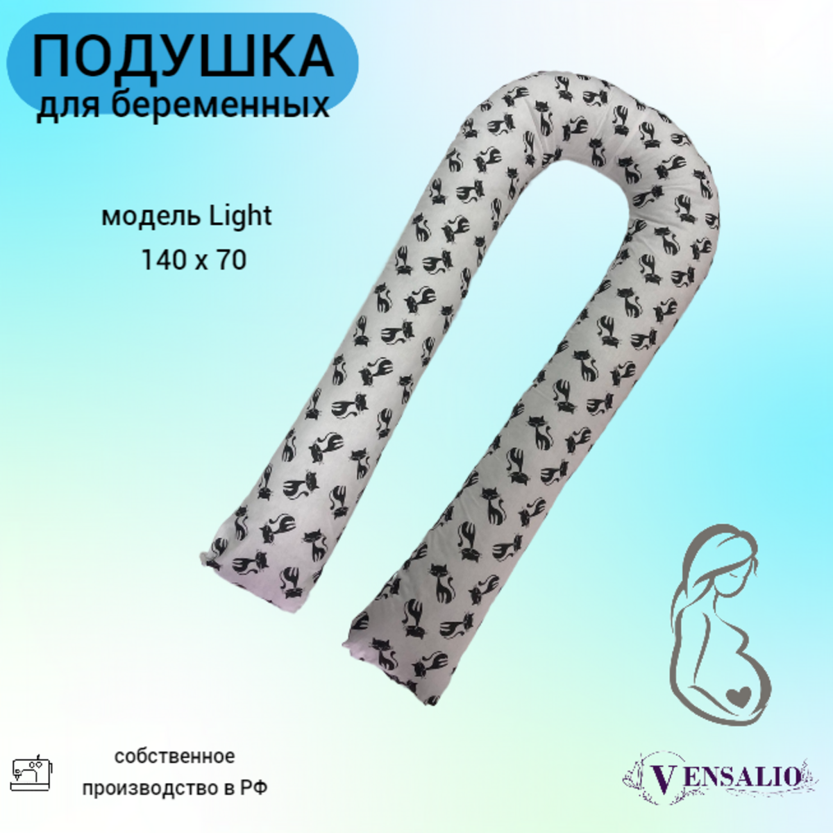 Подушка для беременных Vensalio U340 Light "Кошки", черная с белым, 140x70 интересное: