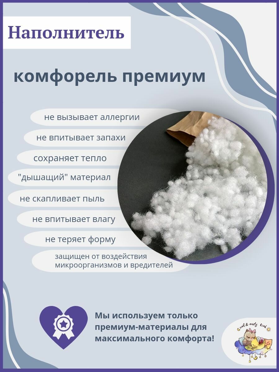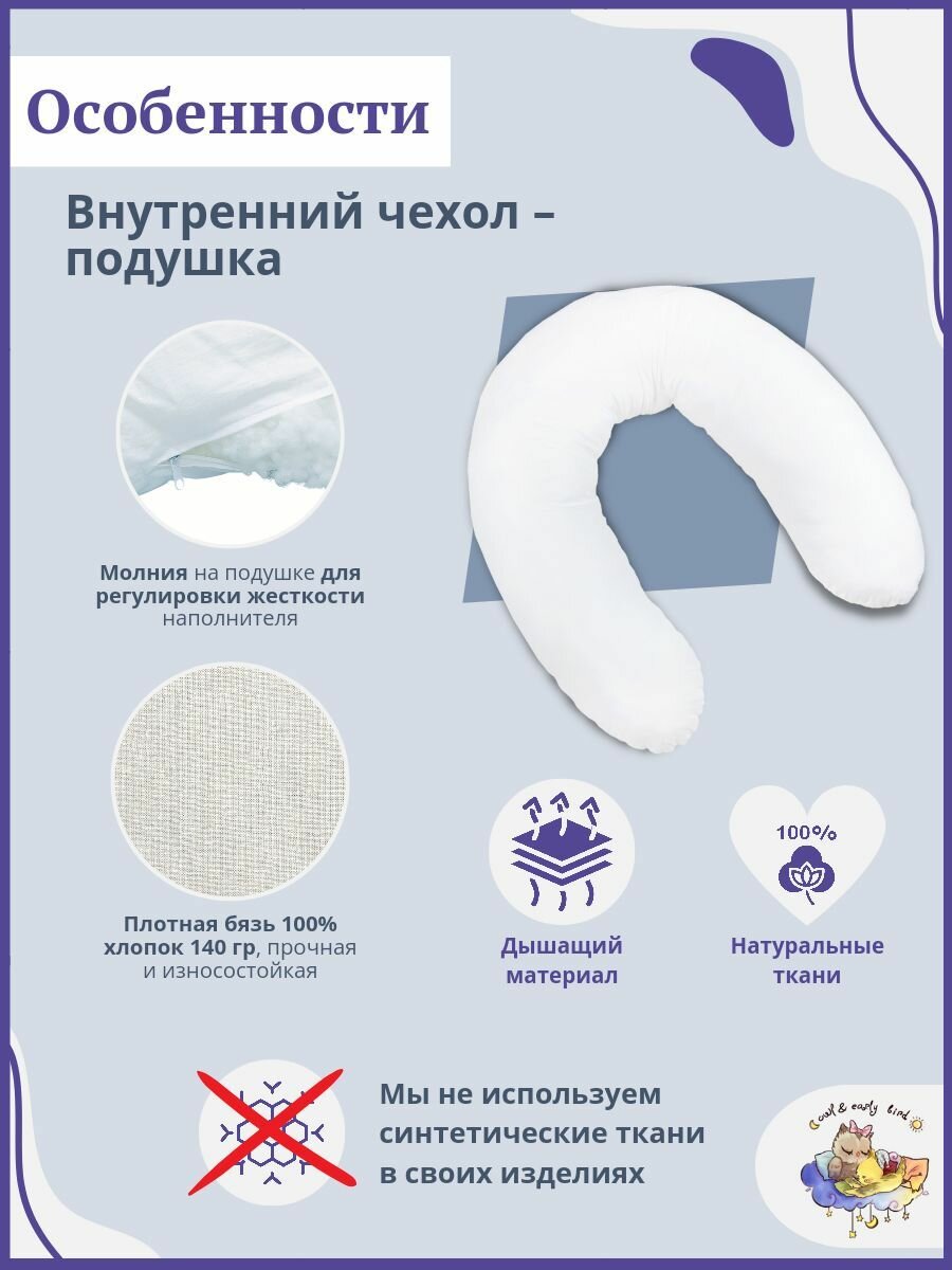 Подушка для беременных "Owl&EarlyBird" 35х180 см, съемная наволочка, гипоаллергенная