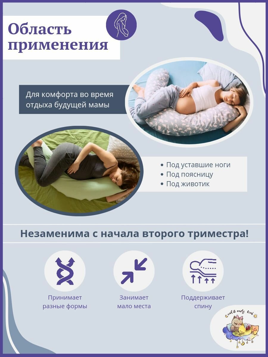Подушка для беременных "Owl&EarlyBird" - удобная и комфортная форма "рогалик"