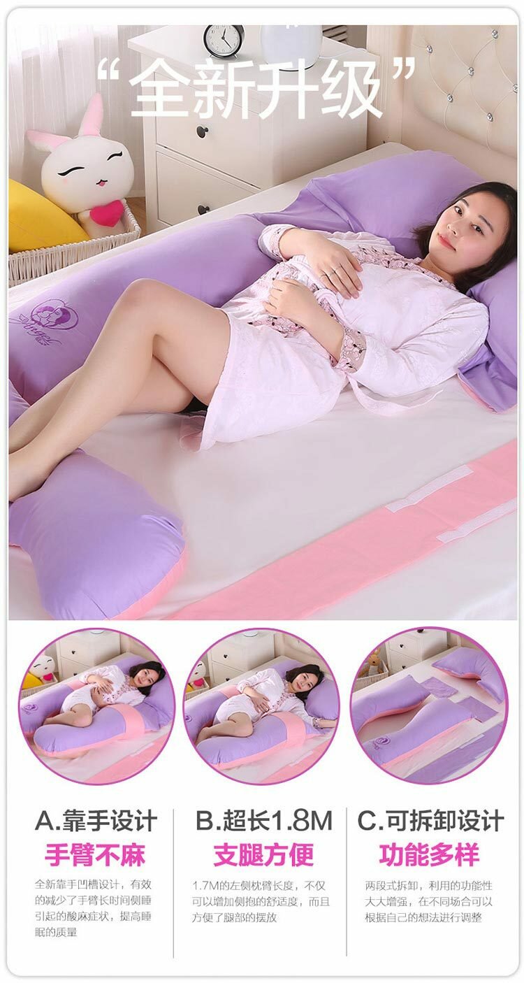 Подушка для беременных, многофункциональная, съемная, хлопок, 145x82 см