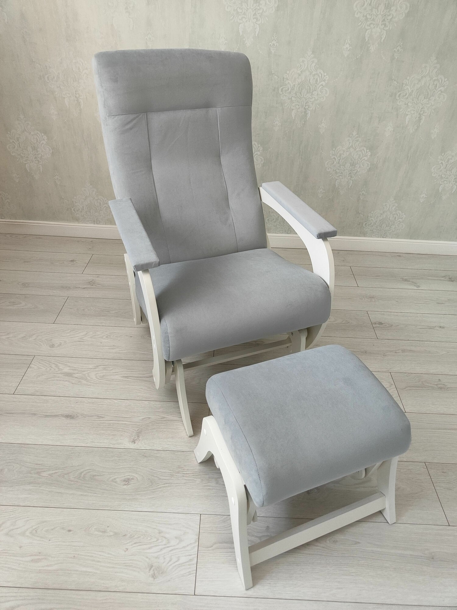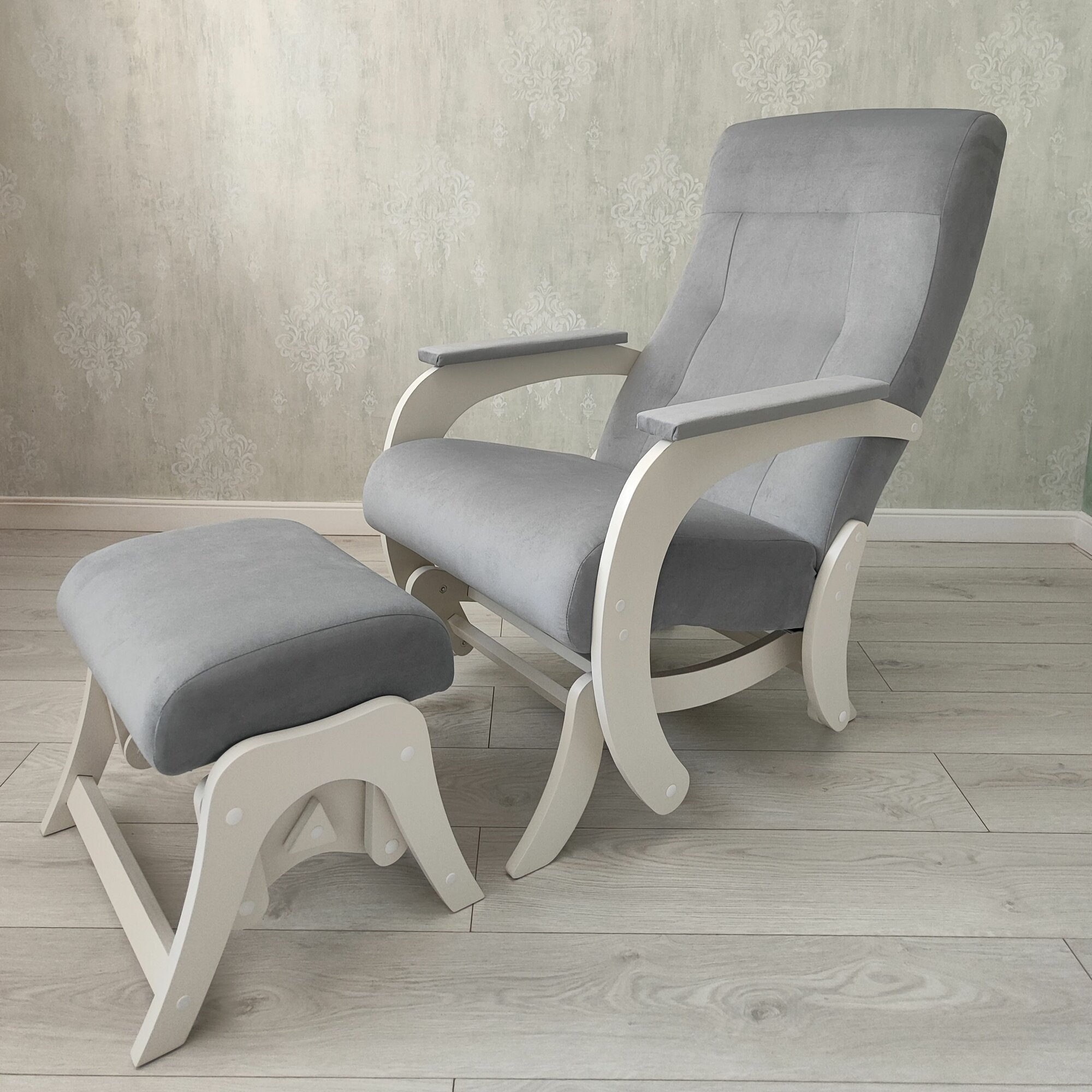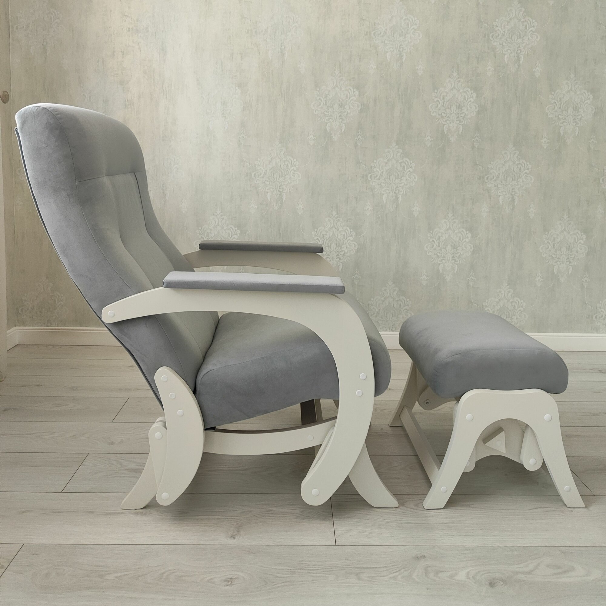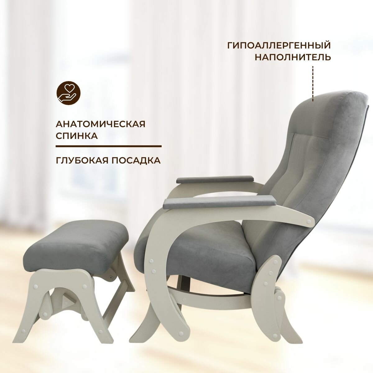Кресло-маятник с пуфом для ног комплект Гранд, серый молочный интересное: