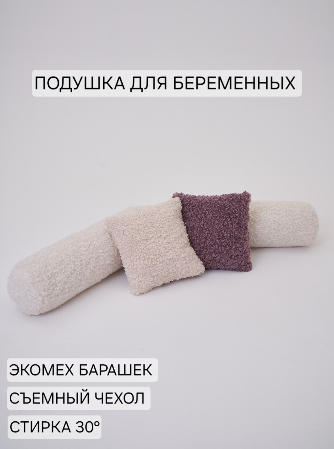 Подушка для беременных, длина 155 см, эко мех Шиншилла, Наполнитель синтешар, съёмный чехол, стирка 30°