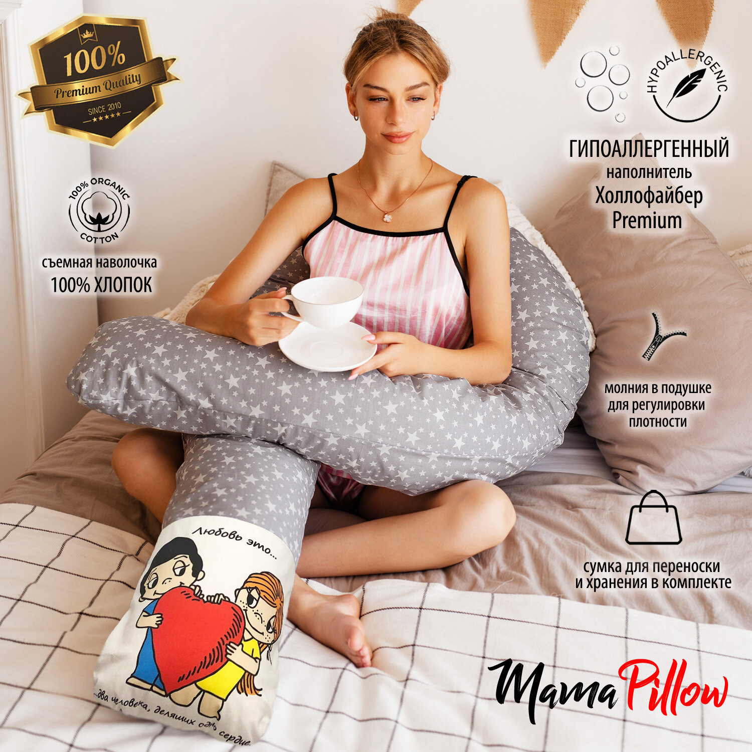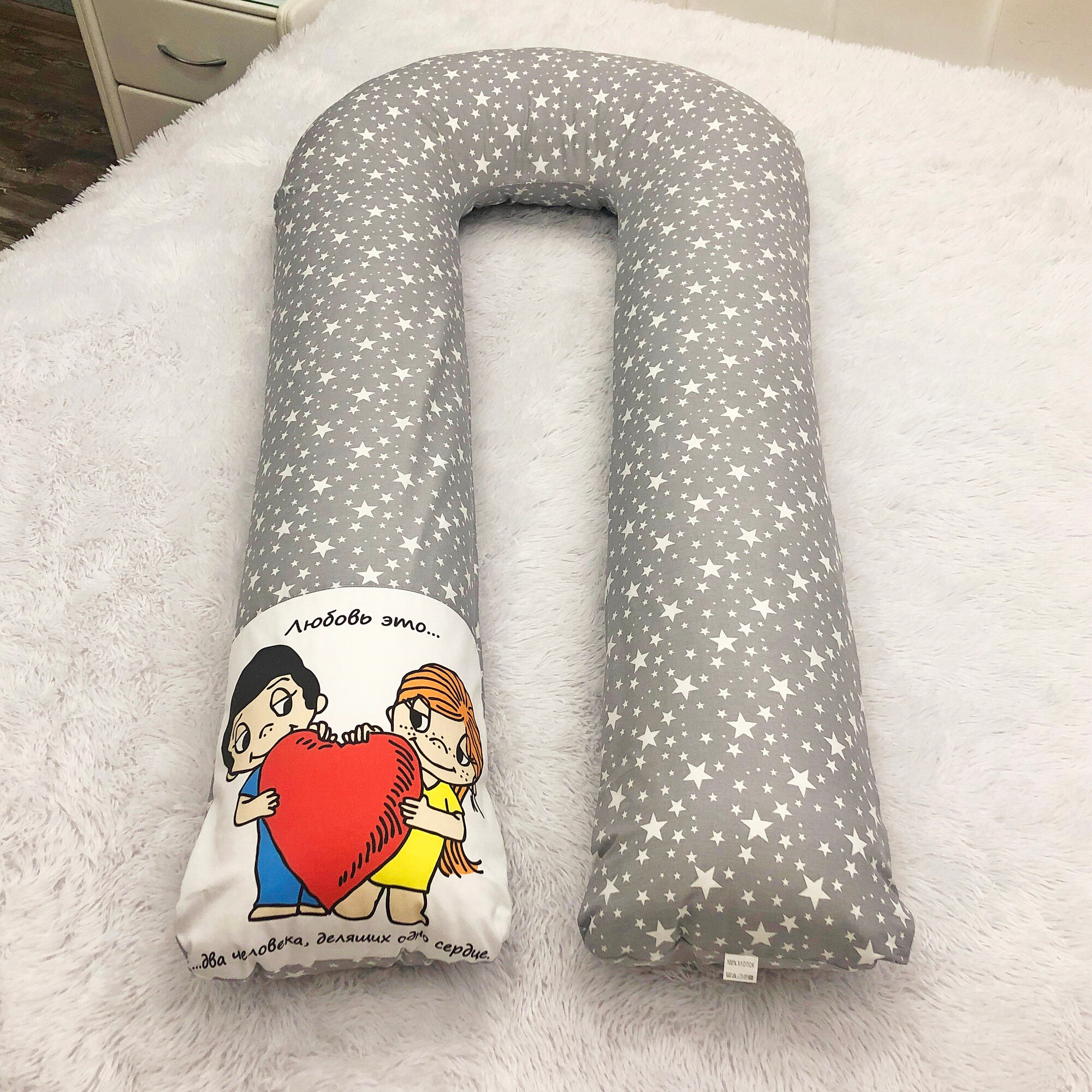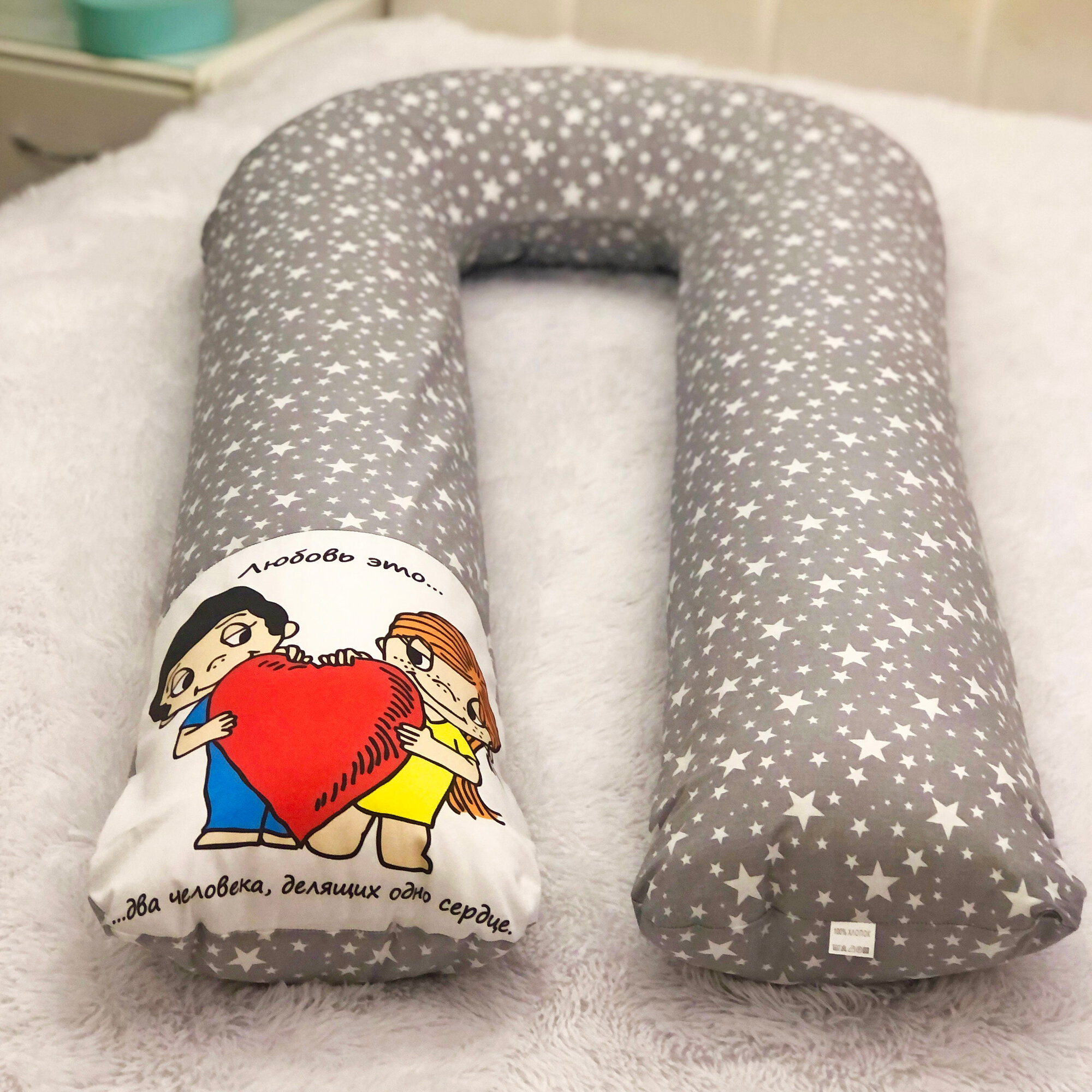 Подушка для беременных Mamapillow U 340 + наволочка звездопад с дизайном Love is интересное: