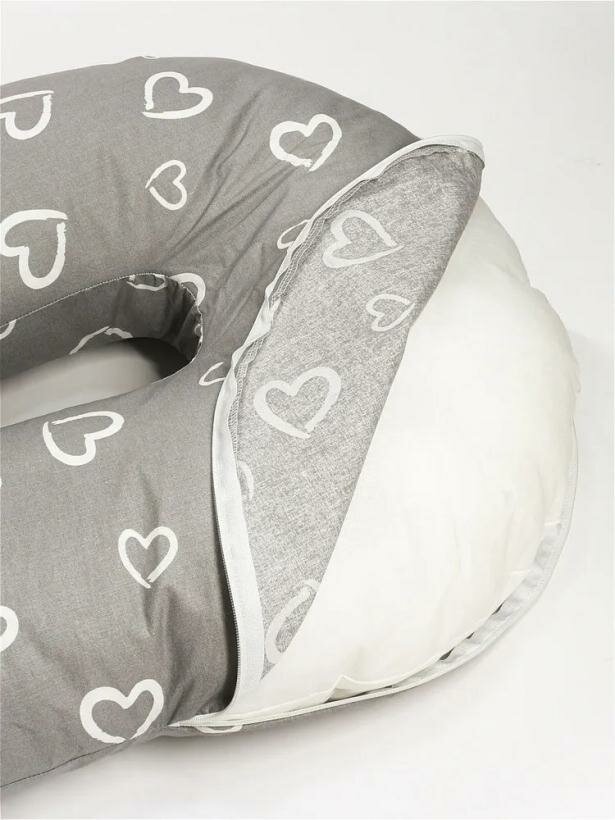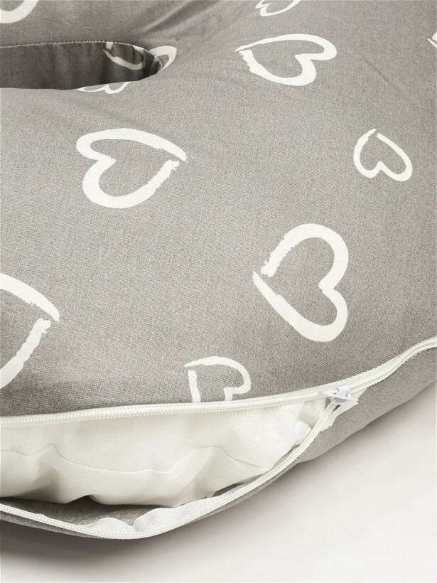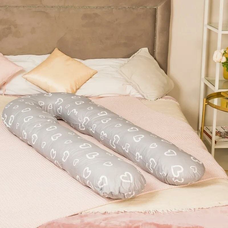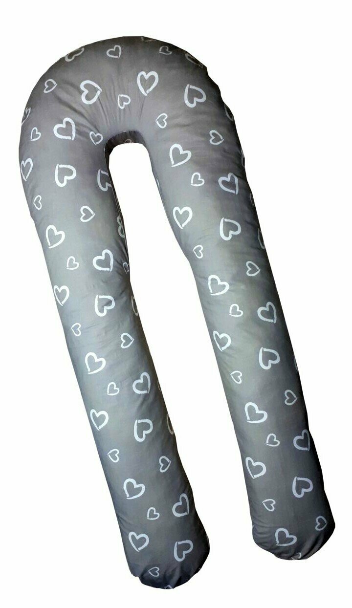 Купить Подушка для беременных "Большая подкова" сердечки на сером, наполнитель-шарики пенополистирола 150х70