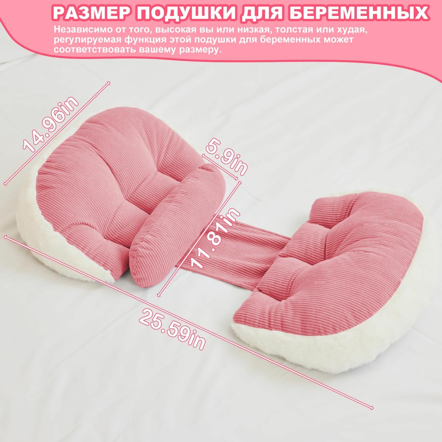 Подушка для беременных сна, удобная роскошная из искусственного меха, поддержка спины, ног, живота, бедер, розовая интересное: