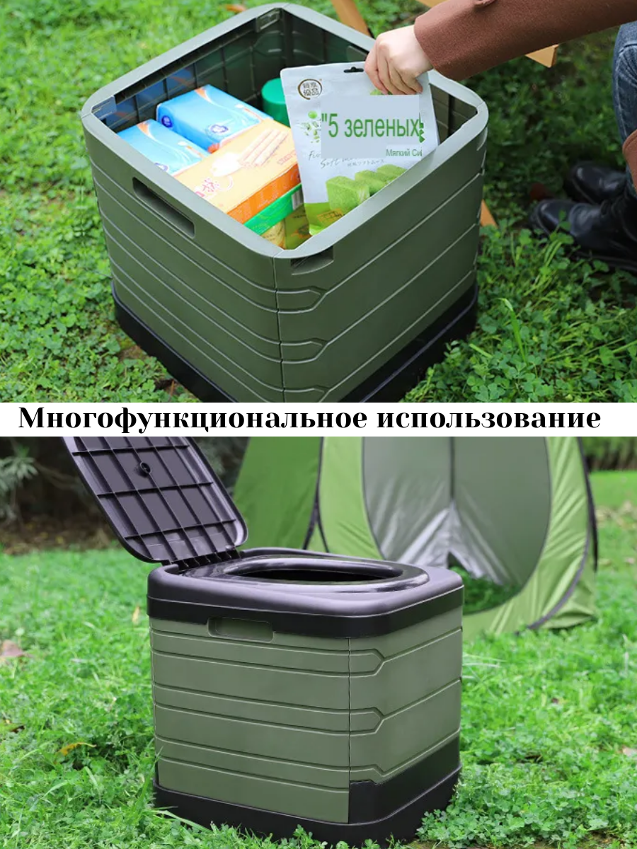 Походный туалет складной Мобильный туалет, портативный, переносной, зеленый интересное:
