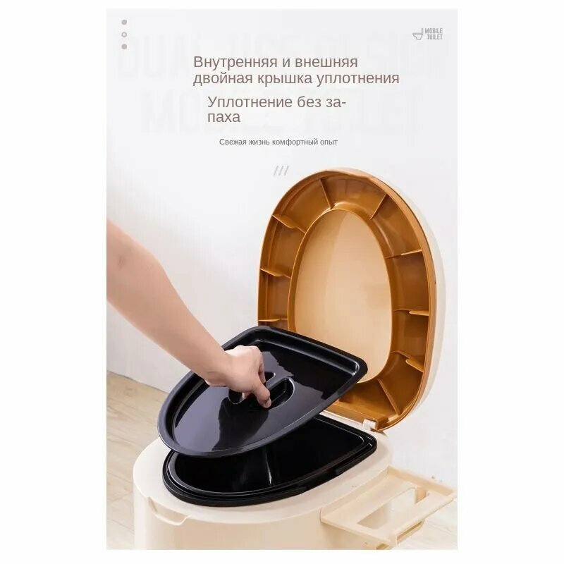 Биотуалет, бежевый, с раздельным сбором отходов, ручная помпа, съемный нижний бак интересное:
