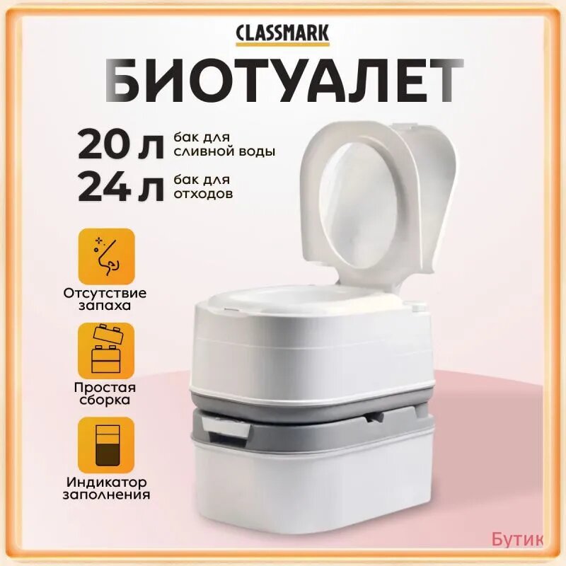 Биотуалет Classmark OC14 E002, переносной, водный смыв, серый интересное:
