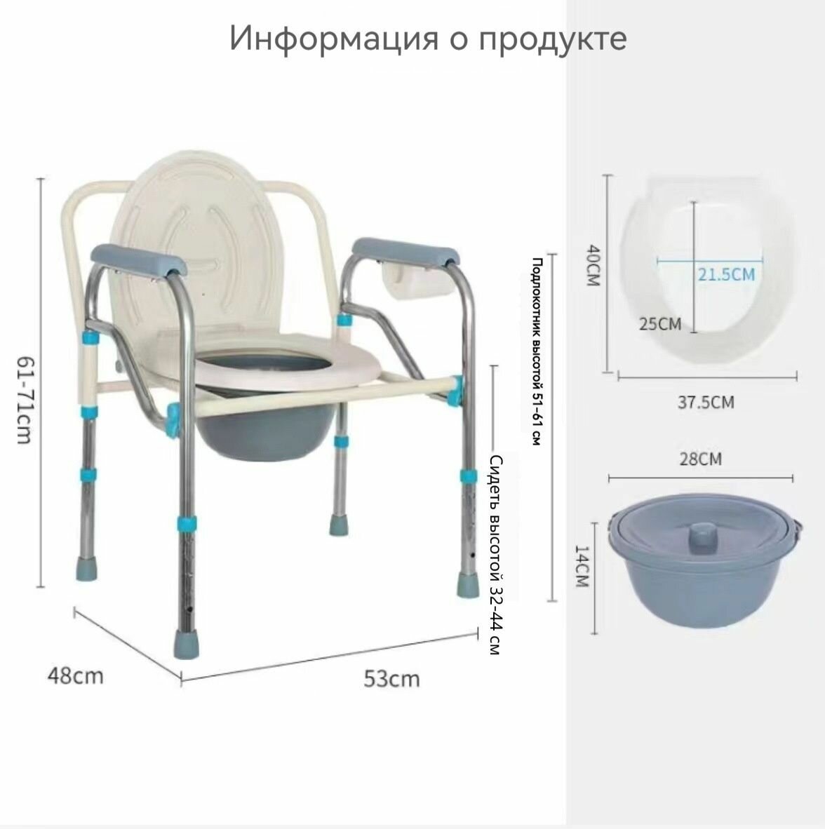 Стул туалет для пожилых и инвалидов J1NSANGE, ZZ29,53x49(61-71)CM, Допустимая нагрузка: 150 кг интересное: