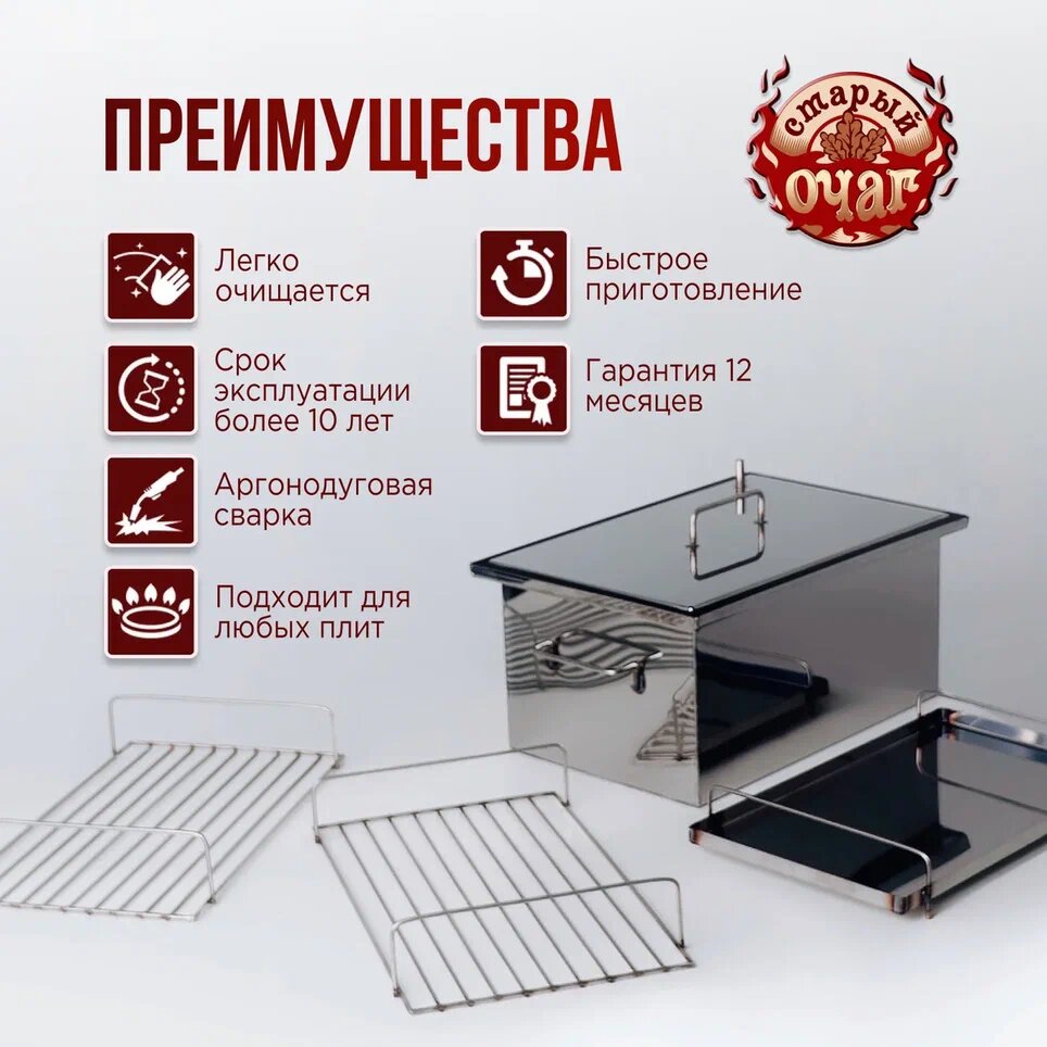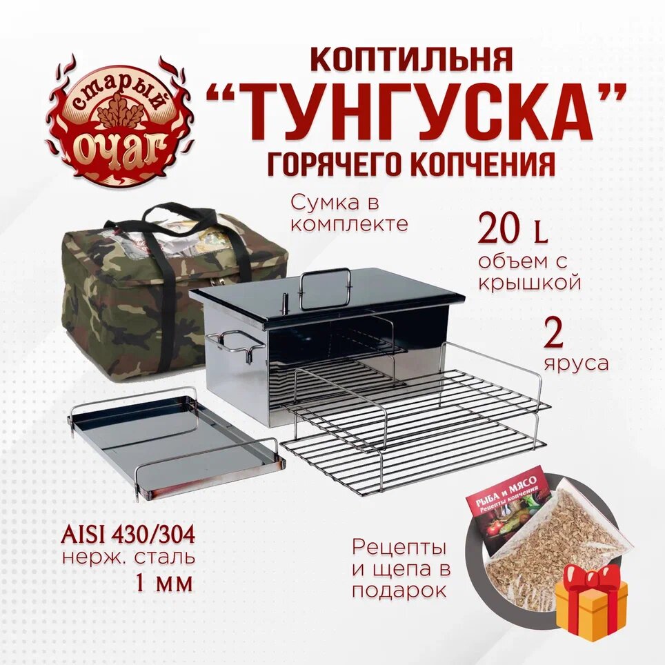 Коптильня горячего копчения "Тунгуска", нержавеющая сталь 1 мм, 40х25х20 см интересное: