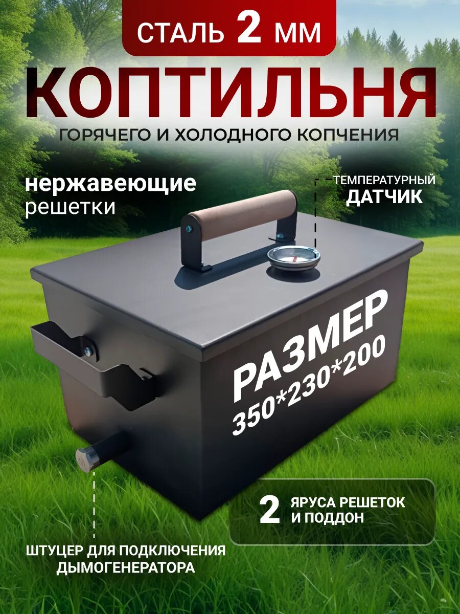 Коптильня горячего и холодного копчения нержавеющие решетки с датчиком температуры 2 мм (350*230*200) интересное: