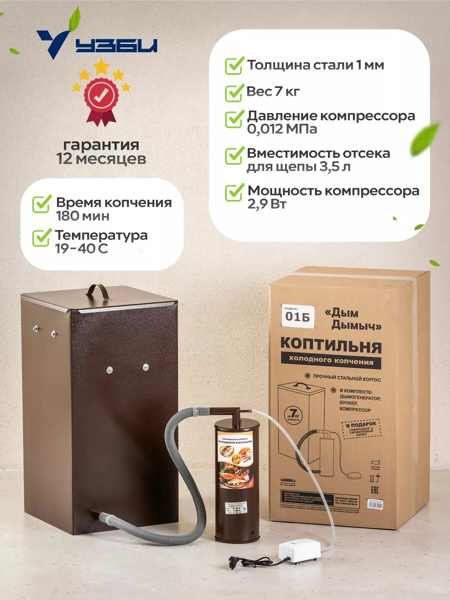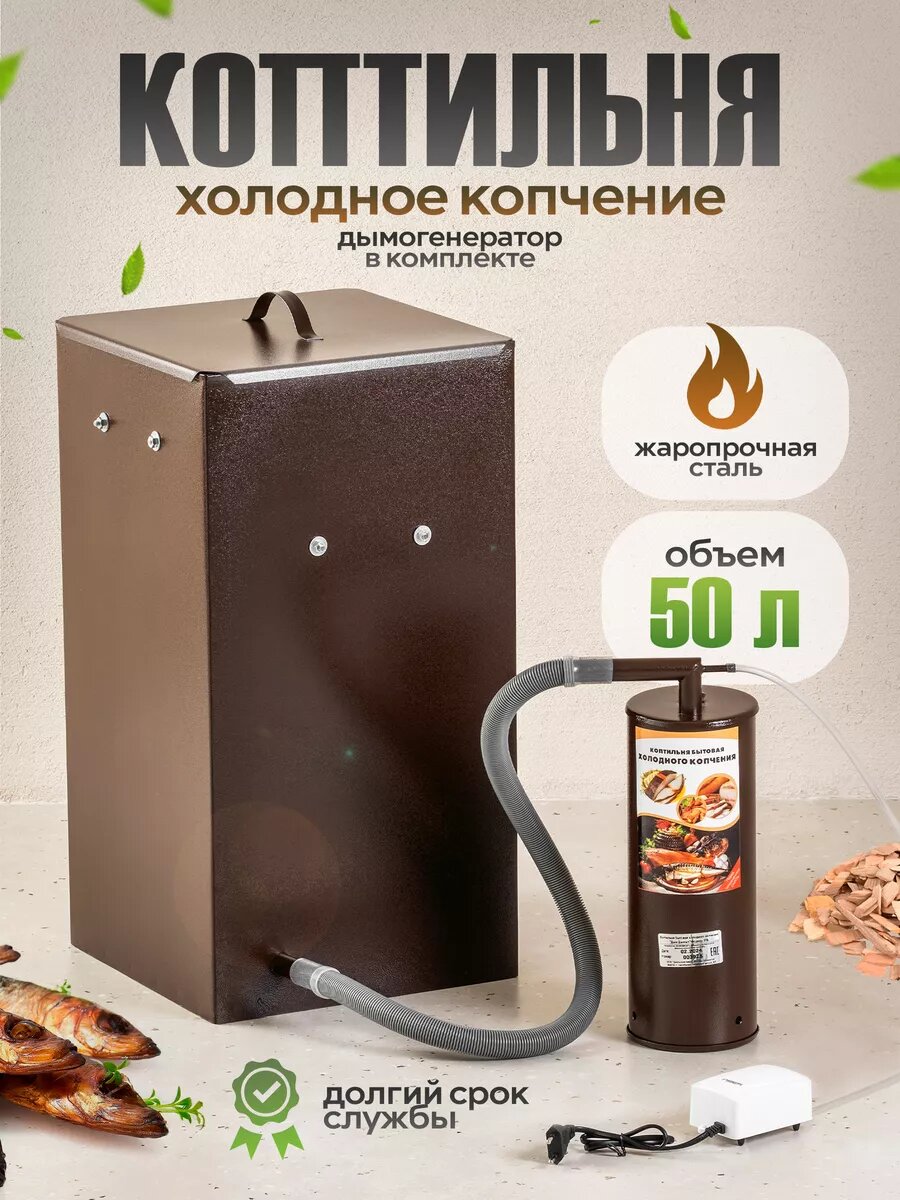 Коптильня холодного копчения с дымогенератором Дым Дымыч 01Б 50 л сталь интересное: