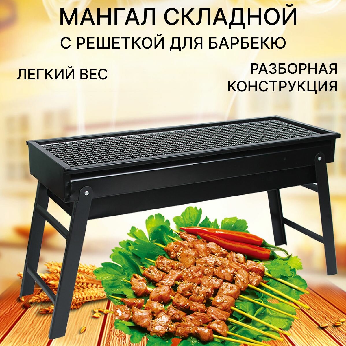 Складной мангал с решеткой для барбекю, портативный гриль для дачи и пикника, 60 х 22 х 33см интересное: