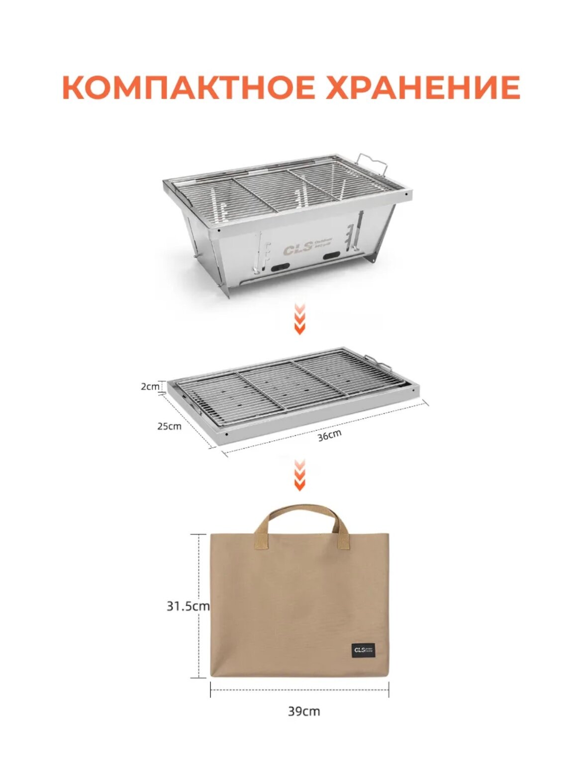 Купить Гриль угольный складной, туристический, из нержавеющей стали
