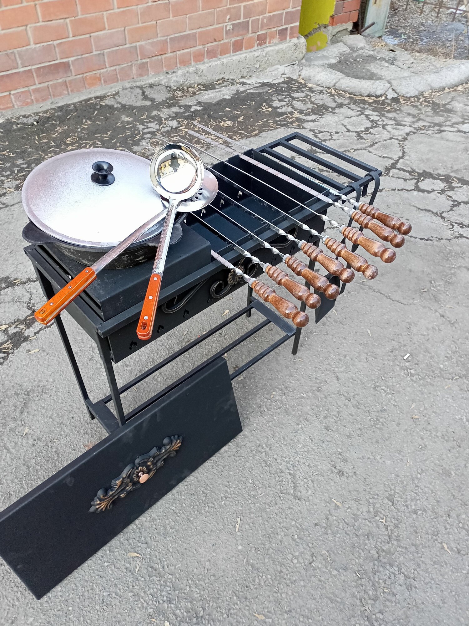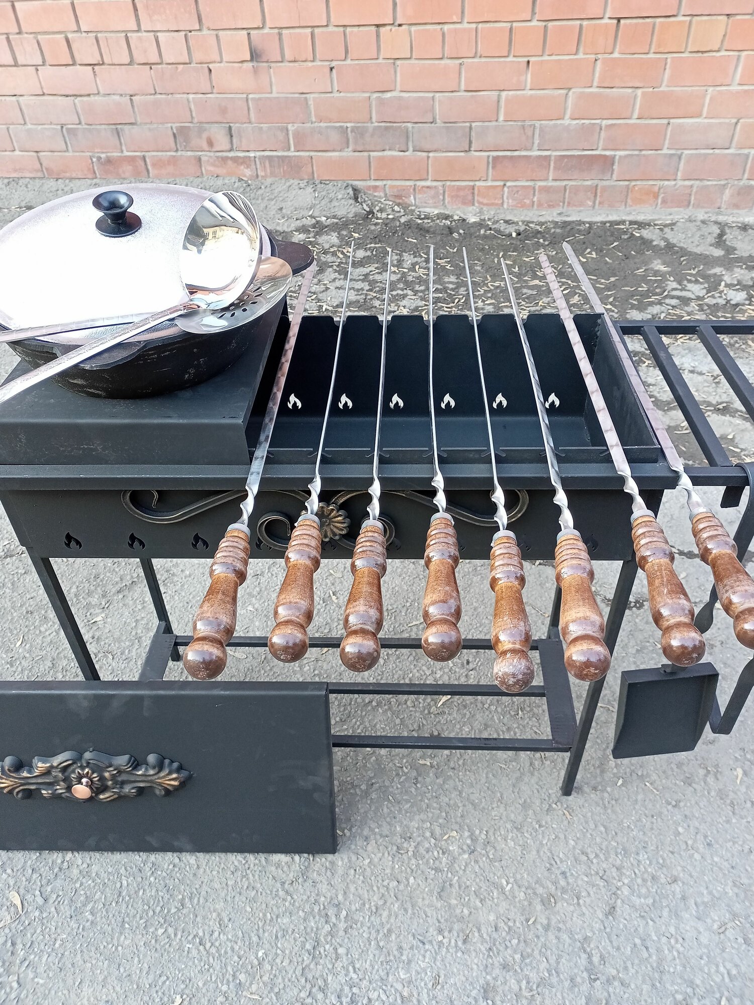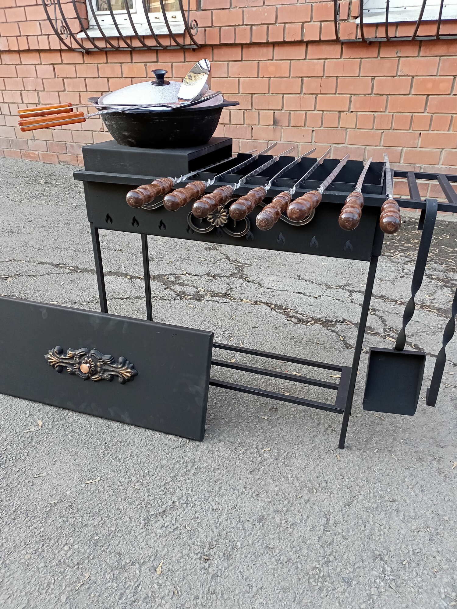 Гриль мангал усиленный с подказанником и 6л казаном чугунным. Полный комплект барбекю с крышкой интересное: