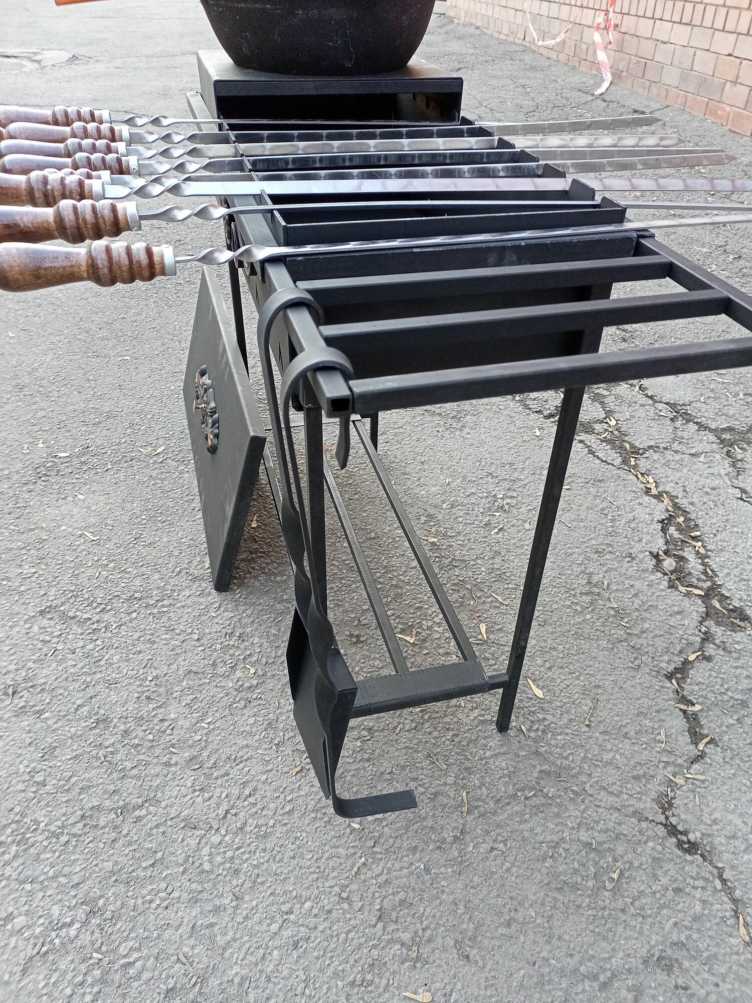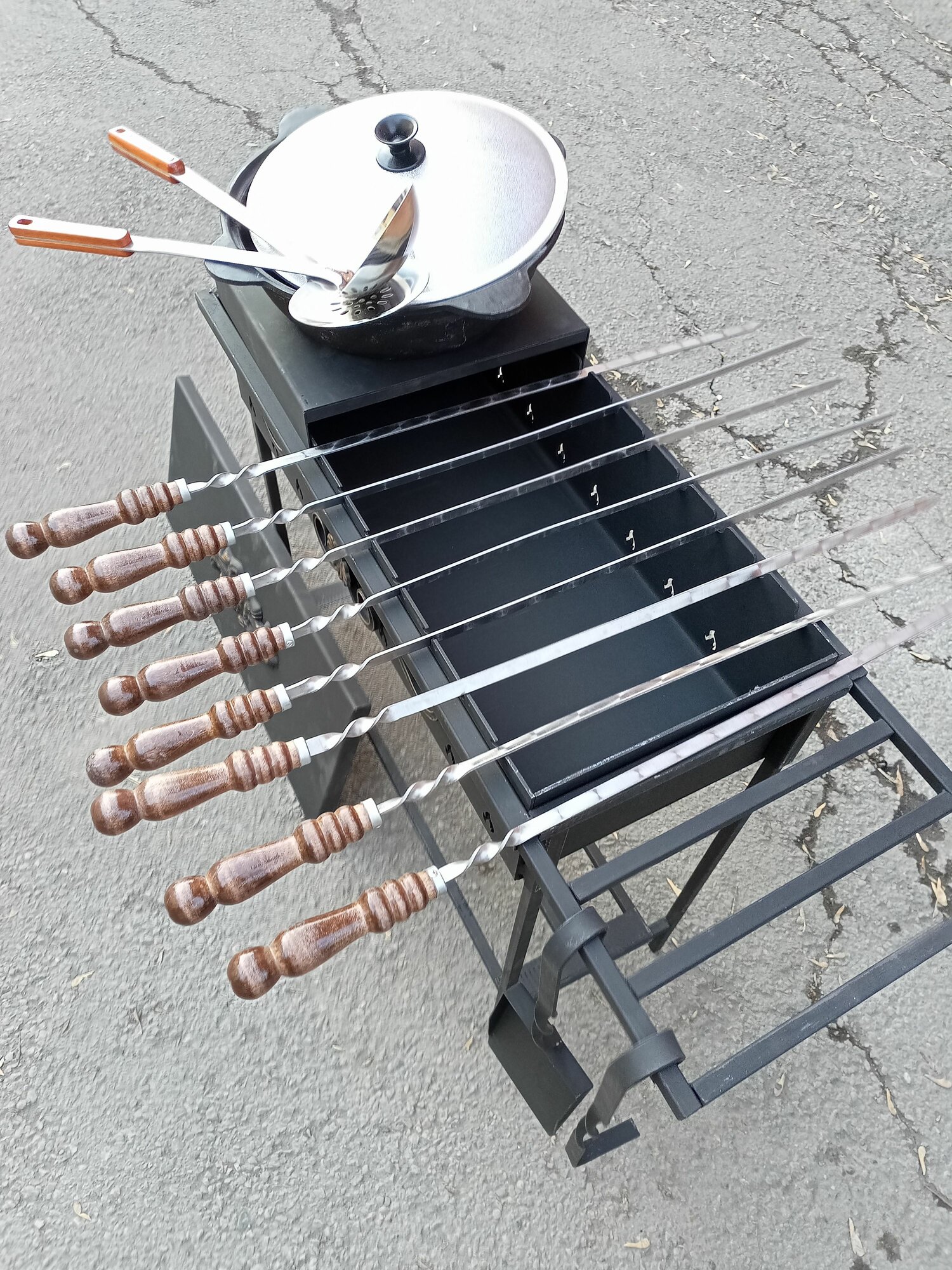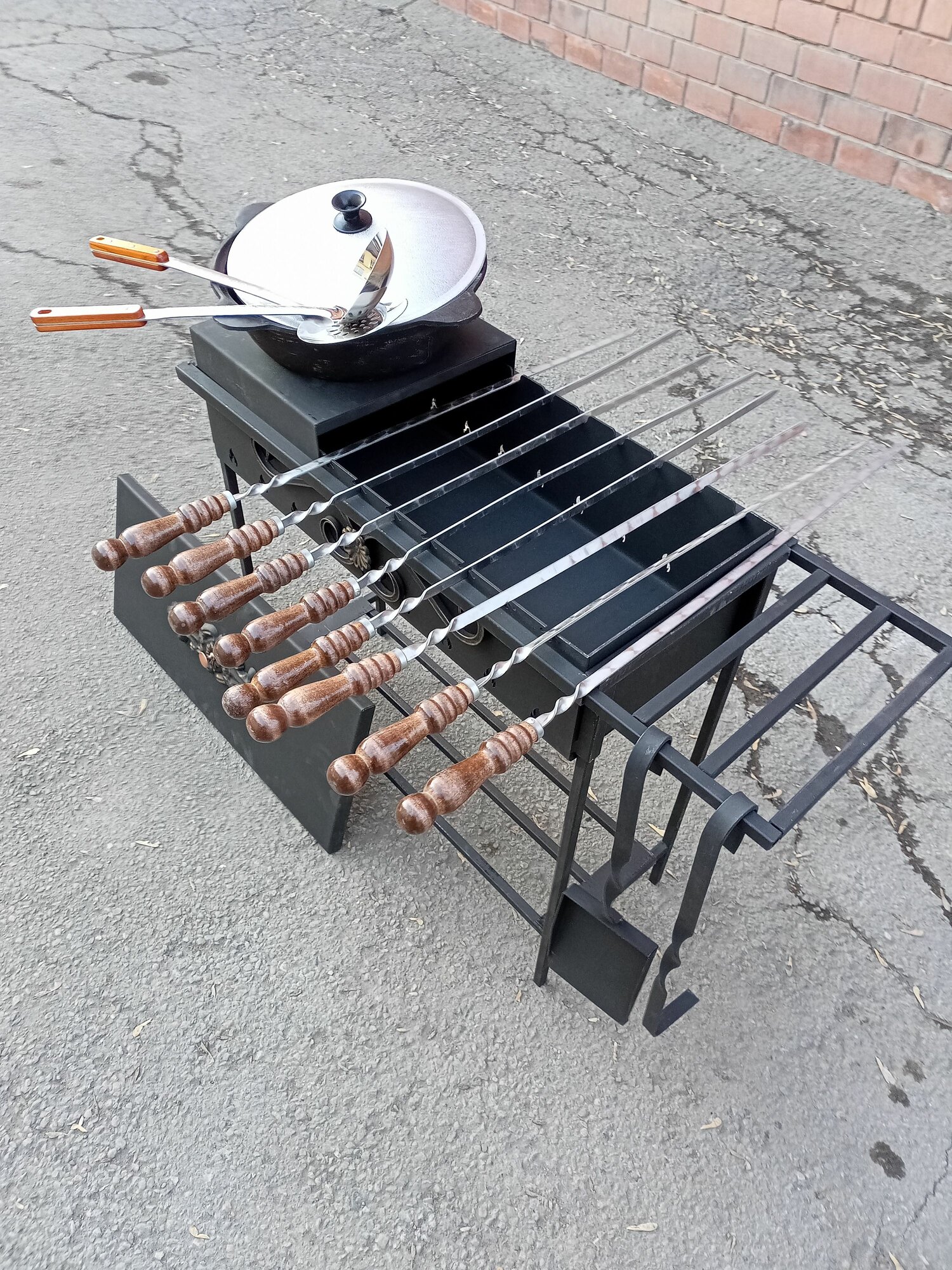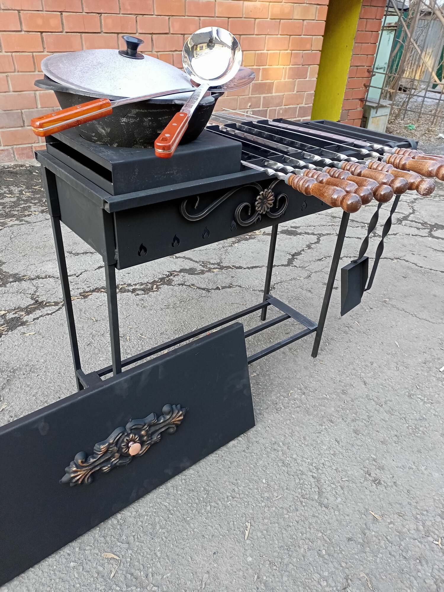 Гриль мангал усиленный с подказанником и 6л казаном чугунным. Полный комплект барбекю с крышкой интересное: