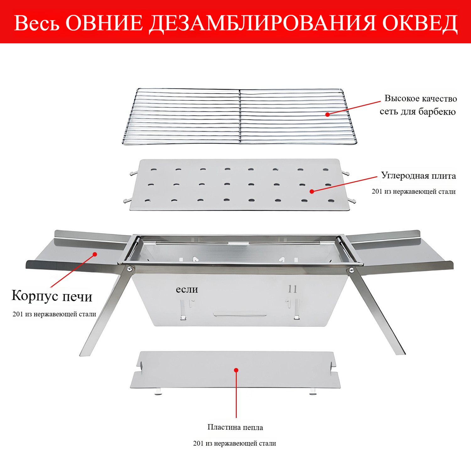 Угольный гриль барбекю Утолщенный гриль для барбекю, Складной, Легкий интересное: