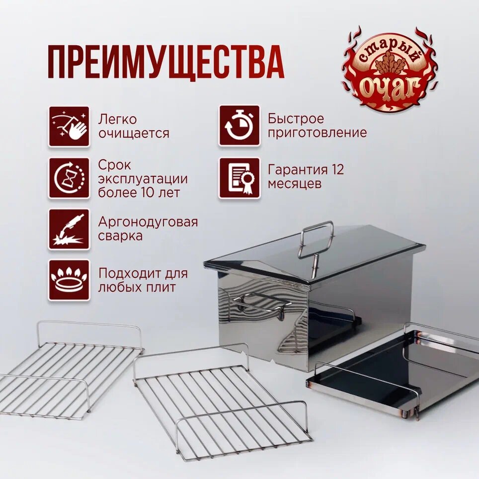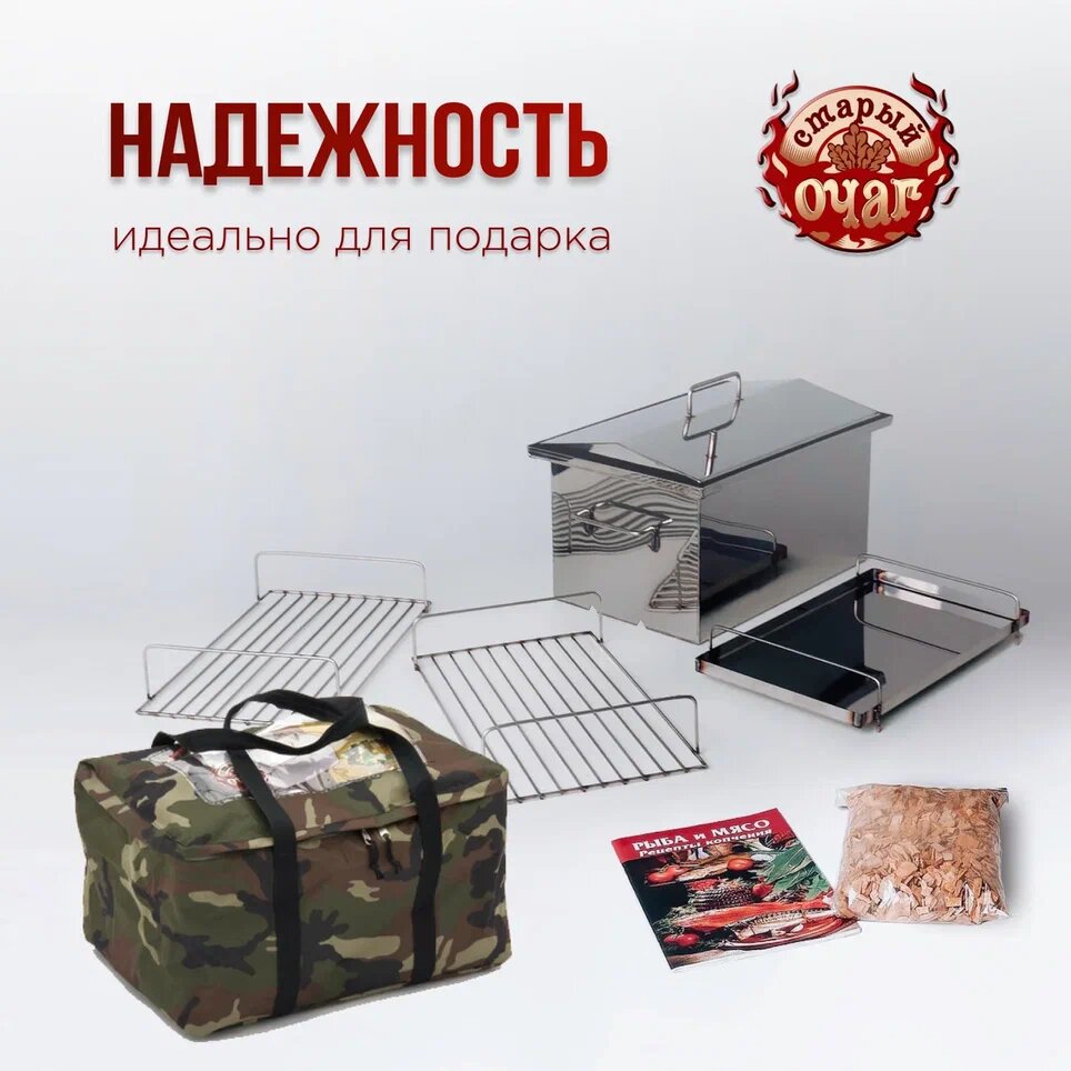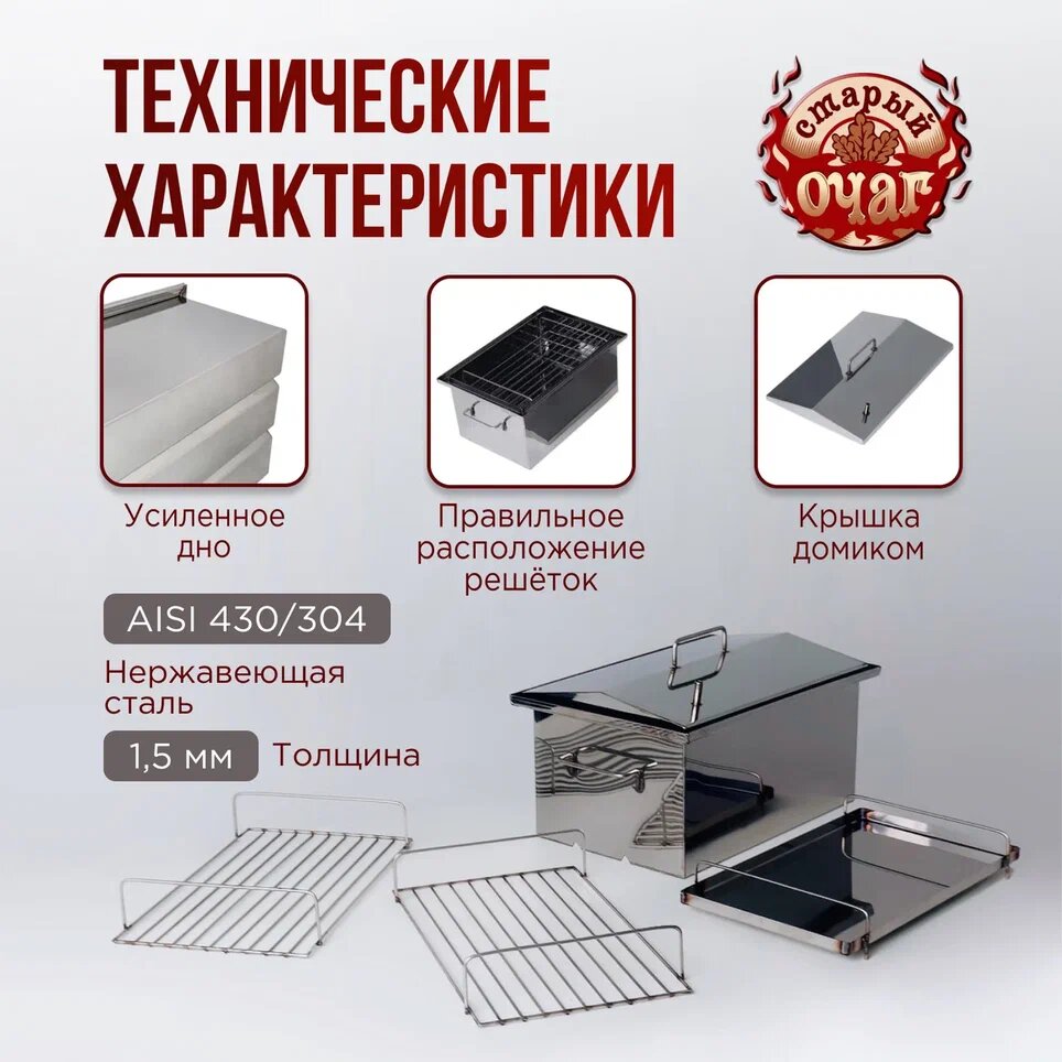 Коптильня горячего копчения "Тунгуска", нержавеющая сталь 1.5мм, домиком 40х25х20см у/д (усиленное дно) интересное: