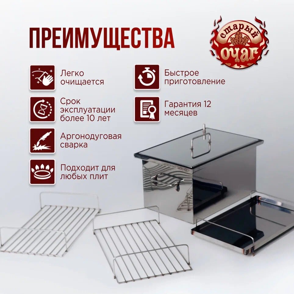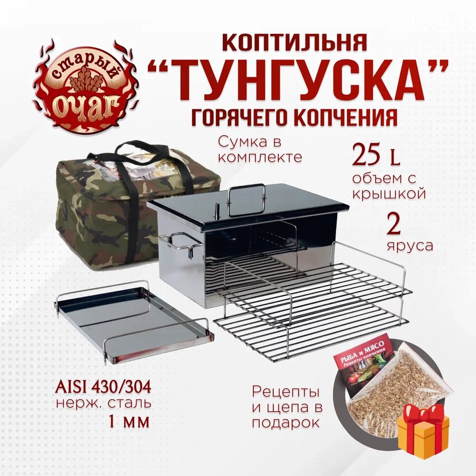 Коптильня горячего копчения "Тунгуска", нержавеющая сталь 1мм, 40х25х25 см интересное:
