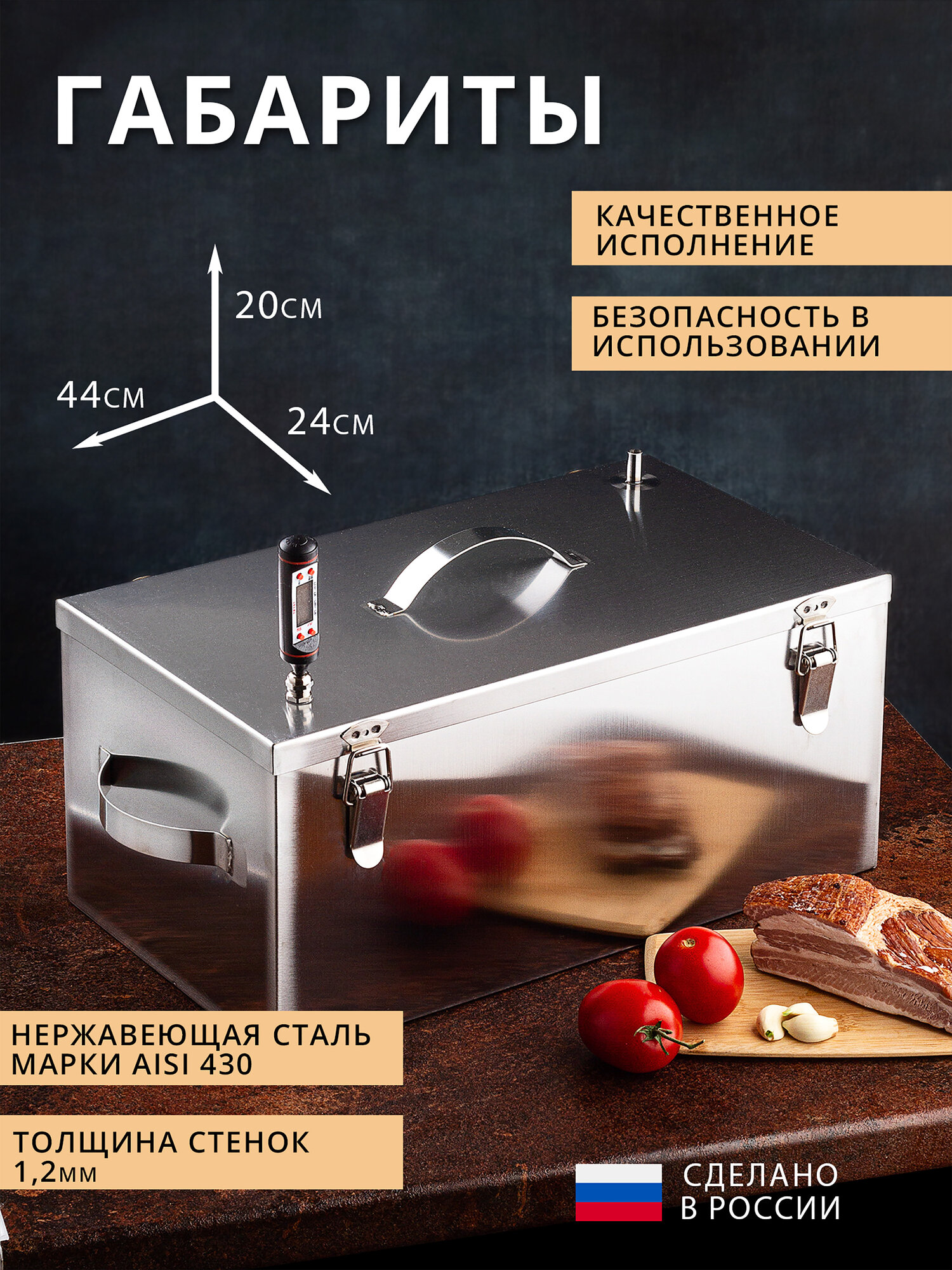 Коптильня горячего копчения 25х44х20см на защелках, нержавеющая сталь интересное: