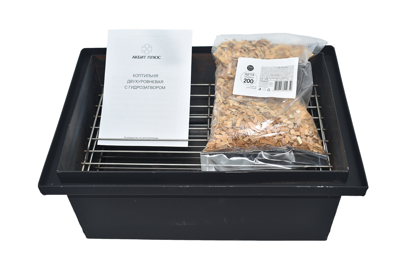 Коптильня сталь 2 мм 45х26х20 см, с гидрозатвором, двухуровневая, коптильня горячего копчения