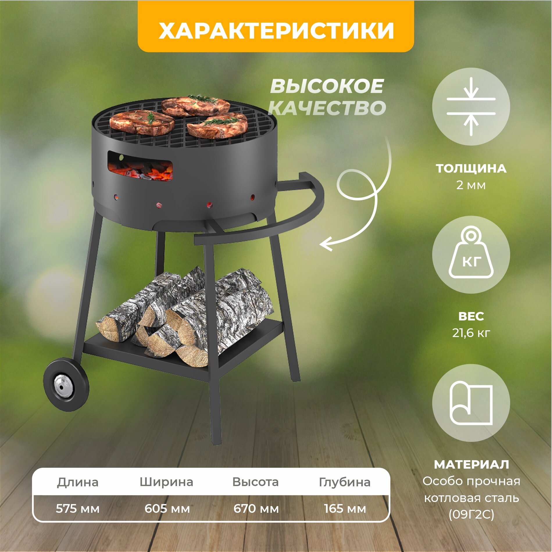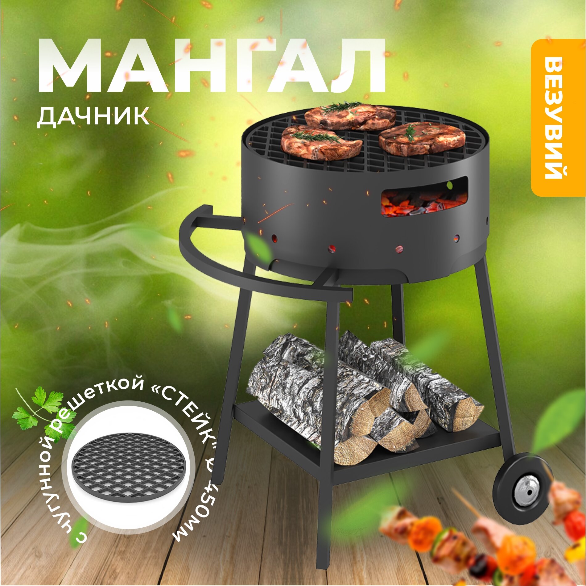 Мангал гриль Везувий "Дачник" с чугунной решеткой Стейк диаметр 450мм интересное: