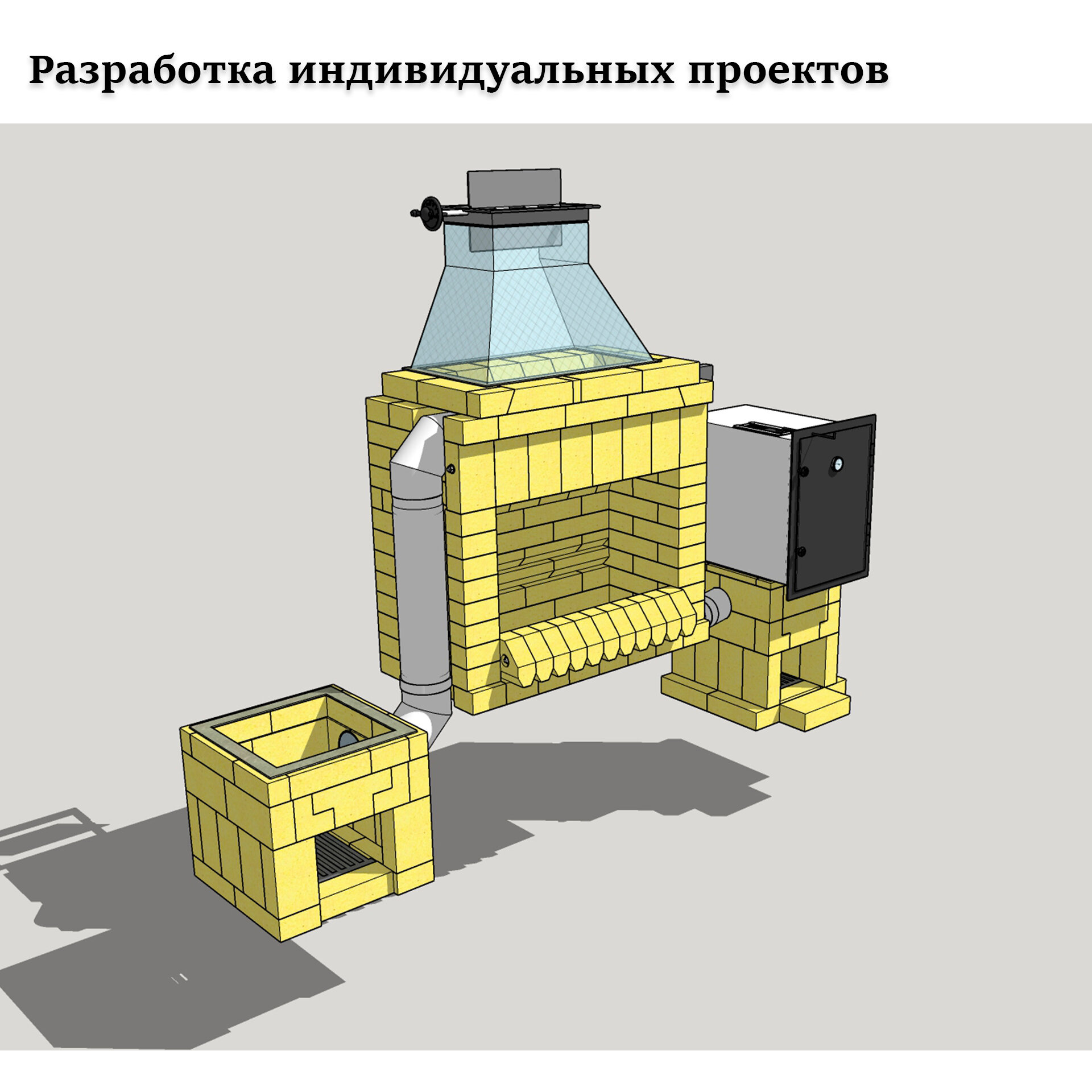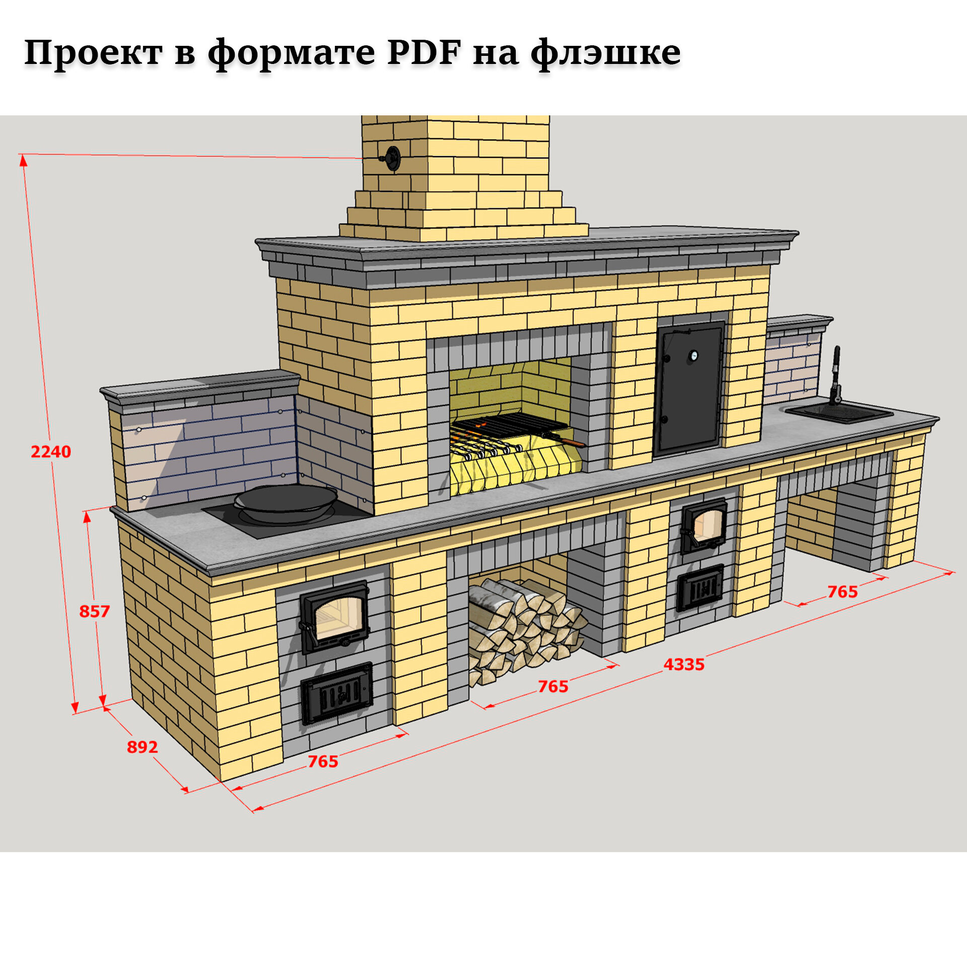 Проект "4335-ПК" барбекю комплекса. Мангал 770 мм. Печь для казана 6-12 л. Камера горячего и холодного копчения. интересное: