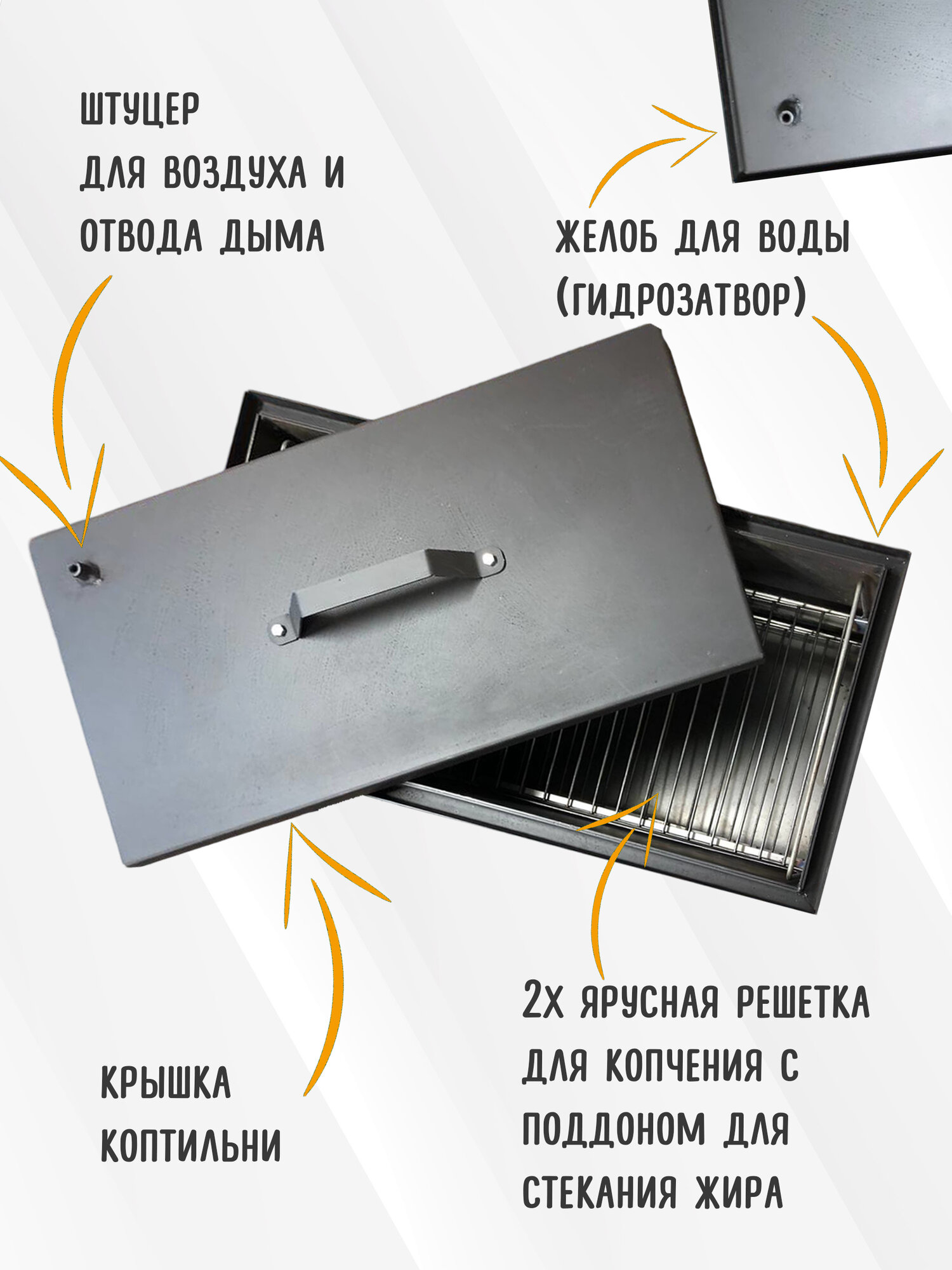 Коптильня Ikraketa, стальная, гидрозатвор, для горячего копчения, 60x30x30 см интересное: