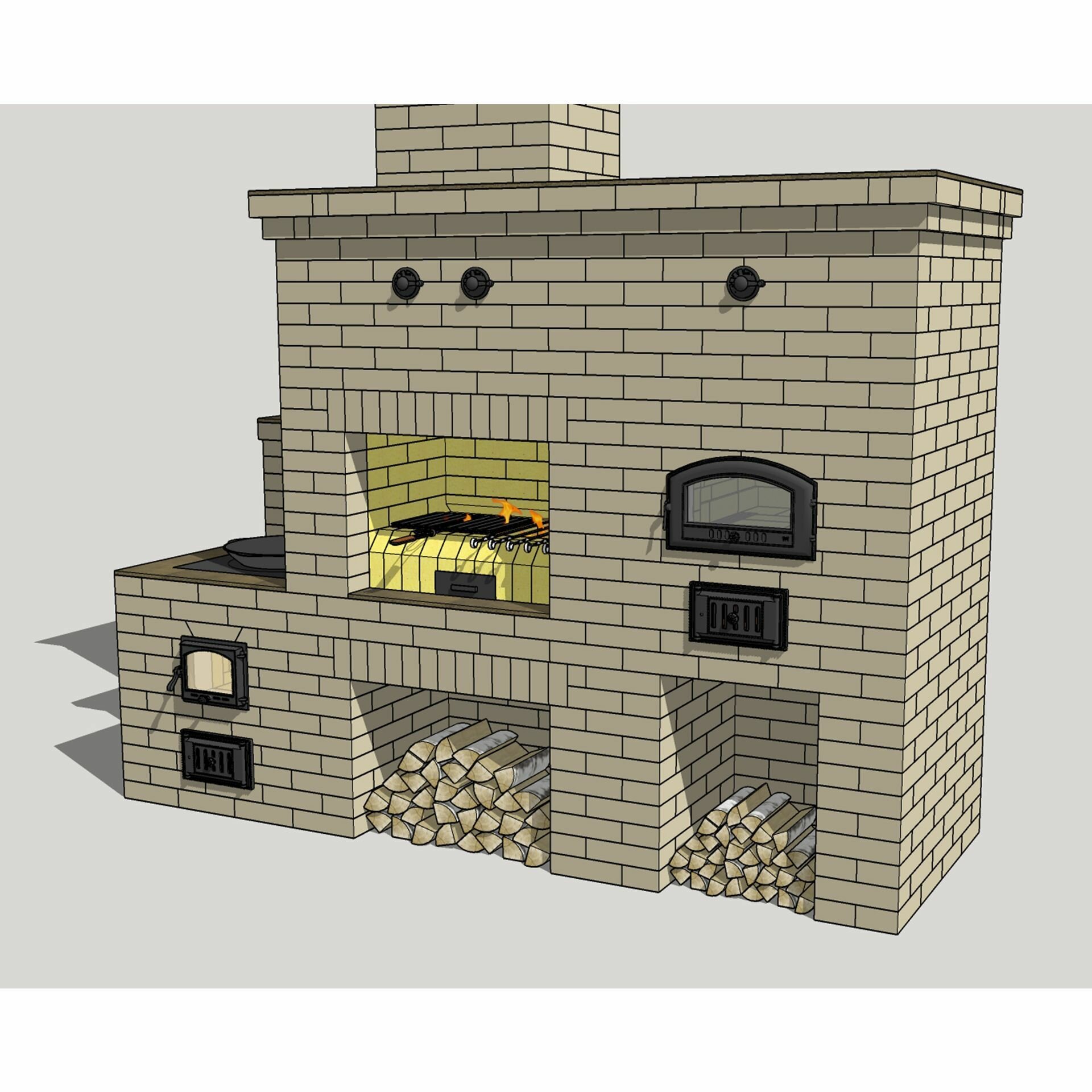 Купить Проект "2933-ХКП" барбекю комплекса . Печь для казана на 22 литра.