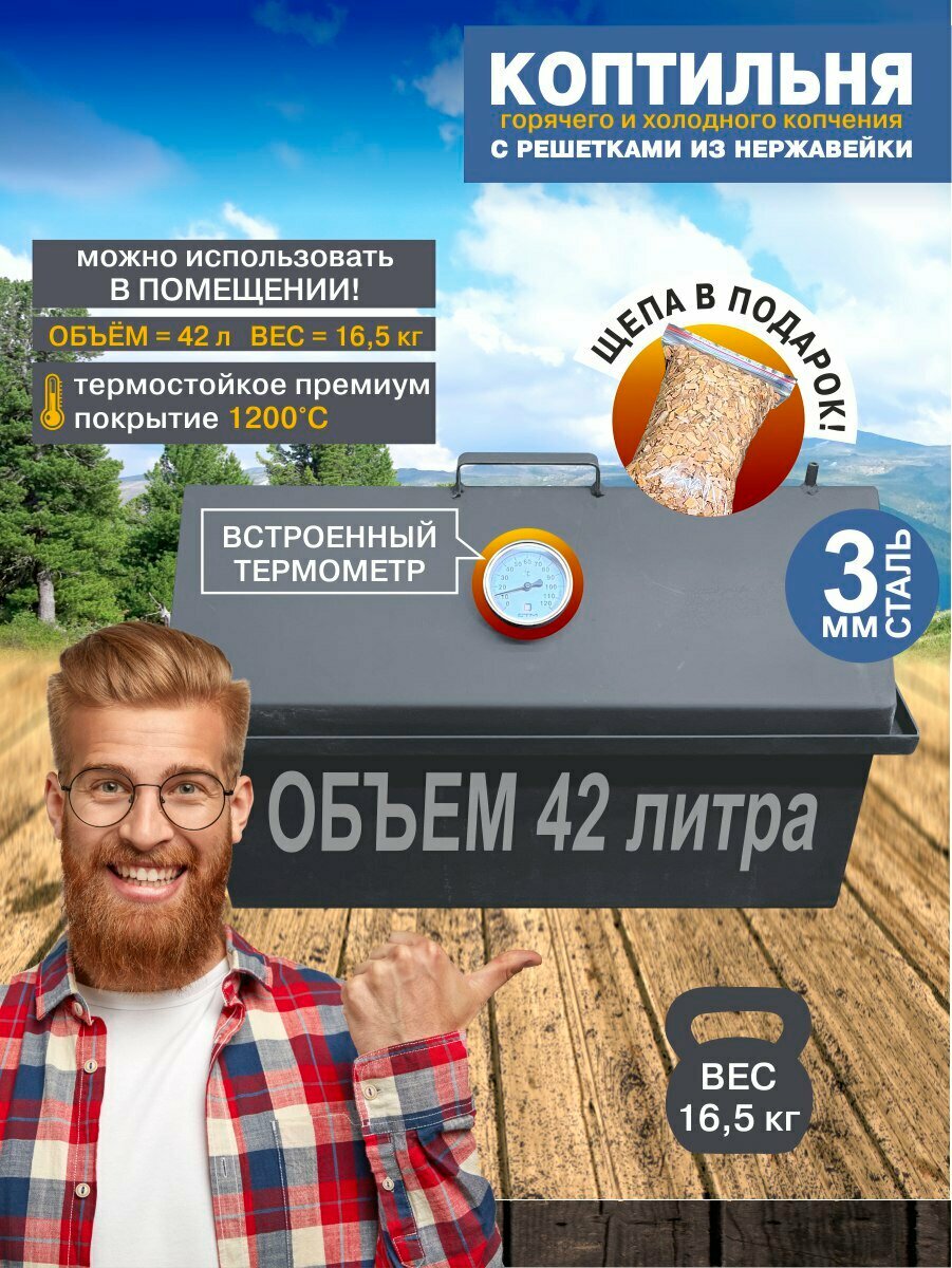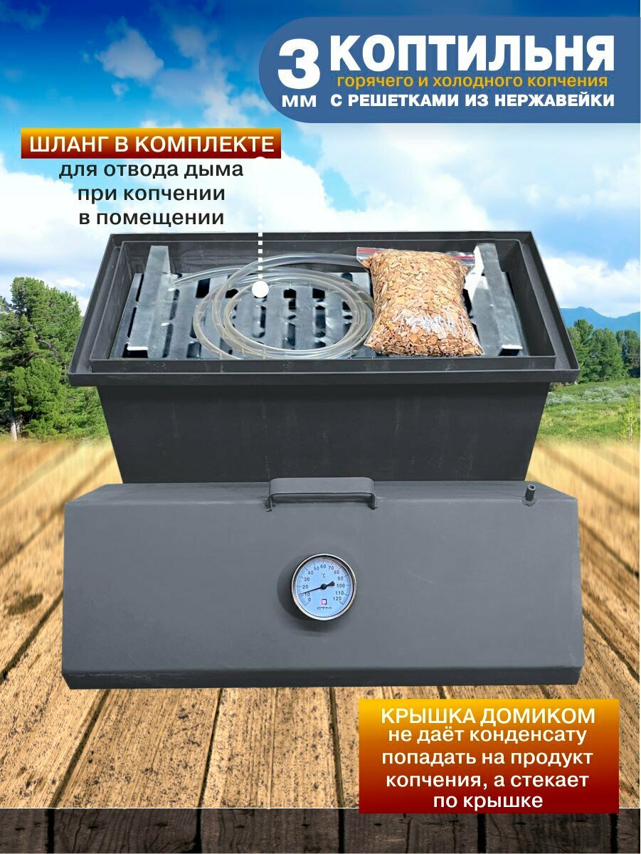 Коптильня горячего и холодного копчения с гидрозатвором из стали 3мм с решетками из нержавеющей стали интересное: