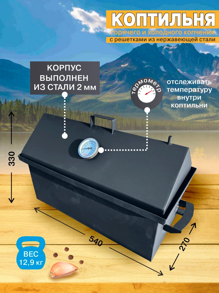 Коптильня горячего и холодного копчения из черной стали 2мм с гидрозатвором и с решетками из нержавеющей стали интересное: