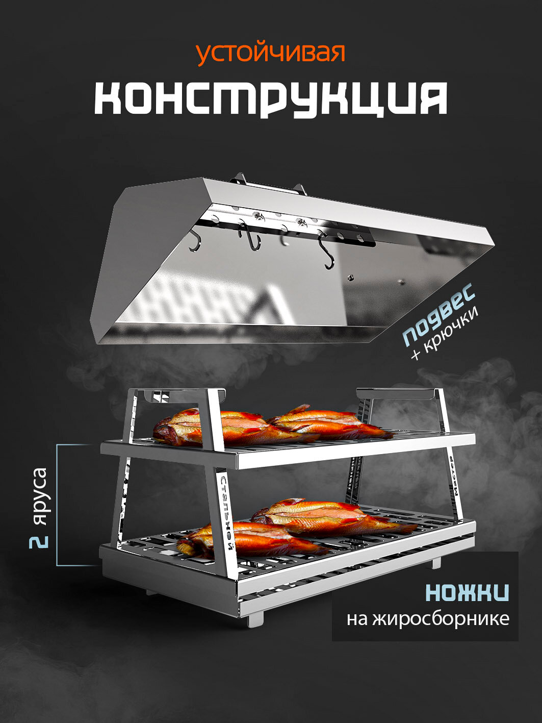 Коптильня Стальной Мастер, нержавеющая сталь 2мм, для горячего и холодного копчения интересное: