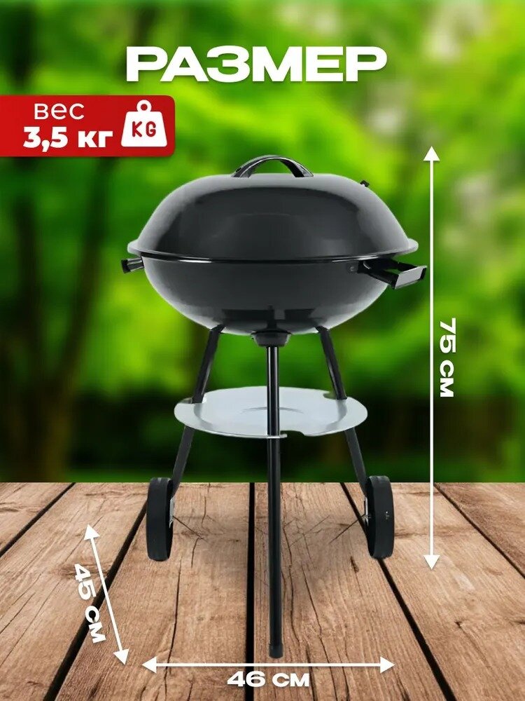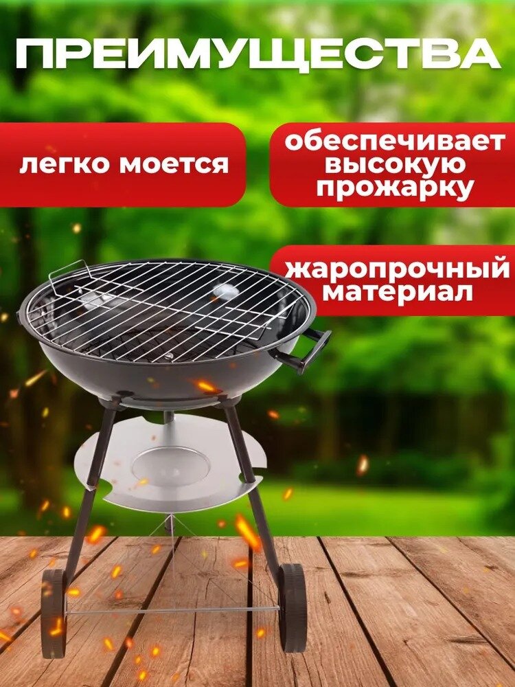 Гриль угольный для дачи и пикника, круглый с крышкой, диаметр решетки 44 см интересное:
