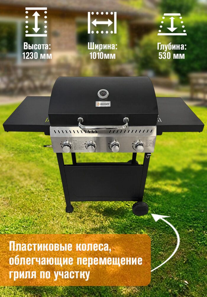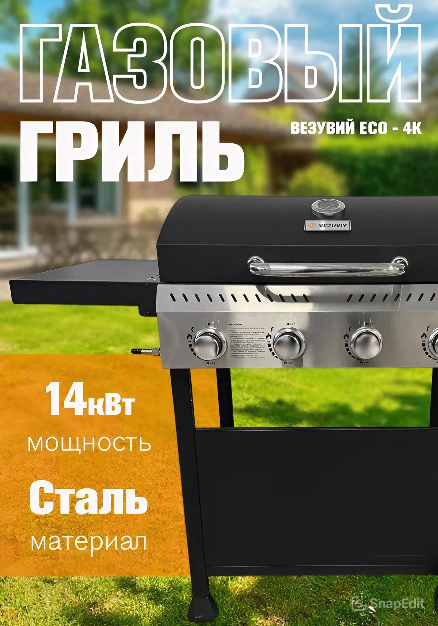 Гриль газовый ВЕЗУВИЙ ECO - 4K для дачи 4 конфорки с крышкой интересное:
