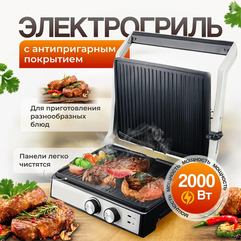 Электрогриль, электрогриль для дома, грильница, барбекю,2000Вт, регулировка температуры, антипригарное покрытие интересное: