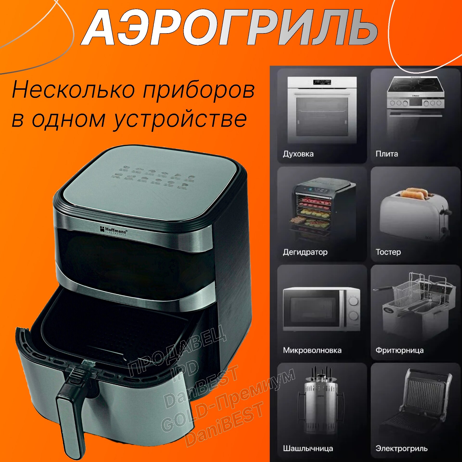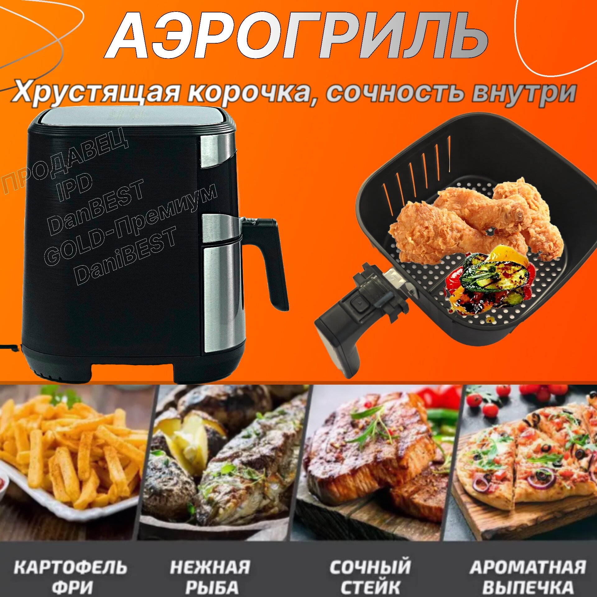 Фритюрница Гриль печь с автоматическими программами для приготовления, 1800 W, антипригарная чаша 5.5 литров, антипригарная решеткой