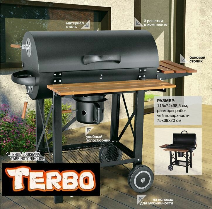 Угольный гриль Tarrington House Louisiana, 115 х 74 х 98,5 см, стальной на подставке с колесами интересное: