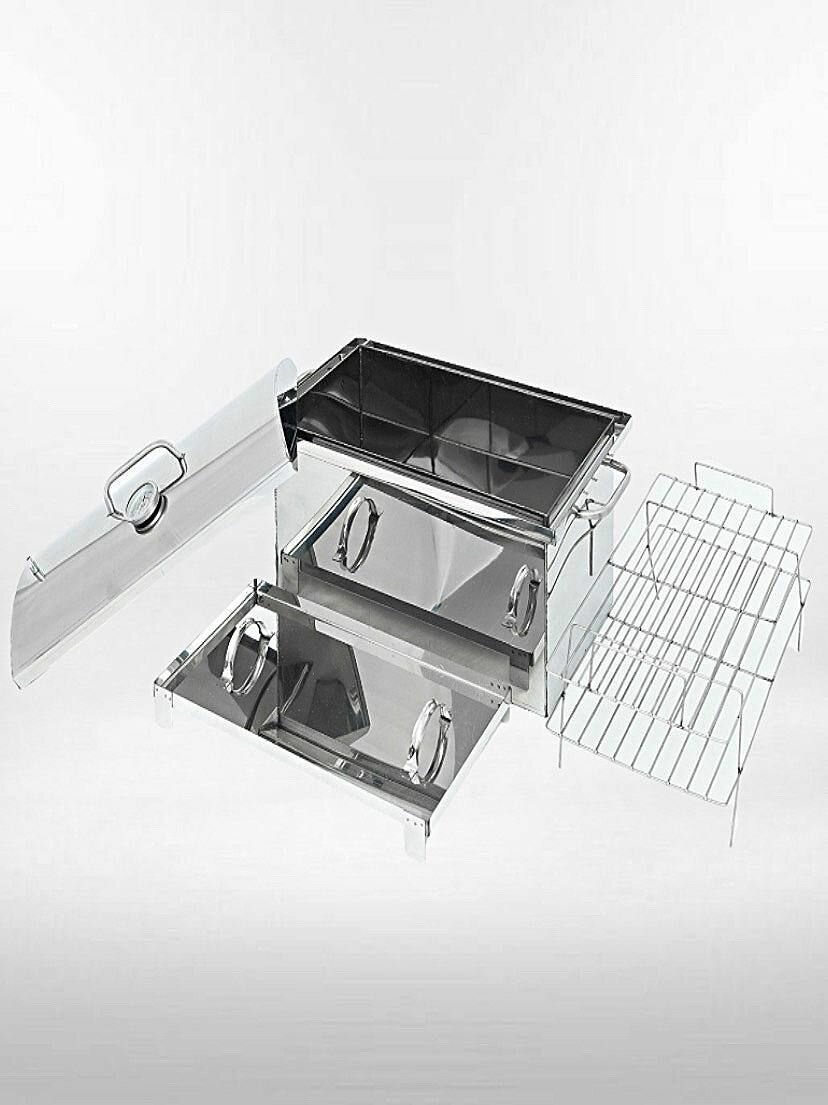 Коптильня с гидрозатвором двухъярусная для горячего и холодного копчения из нержавеющей стали, стандартная на 30 литров. интересное:
