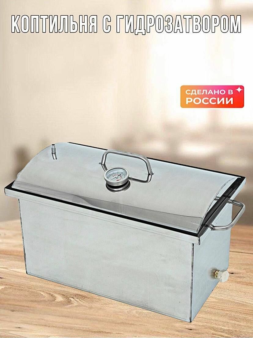Купить Коптильня с гидрозатвором двухъярусная для горячего и холодного копчения из нержавеющей стали, стандартная на 30 литров.